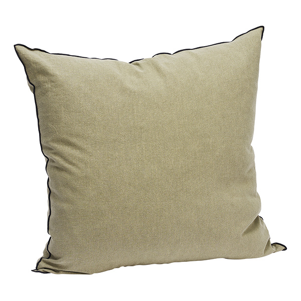 Linnen sierkussenhoes met zwarte bies – Khaki tint