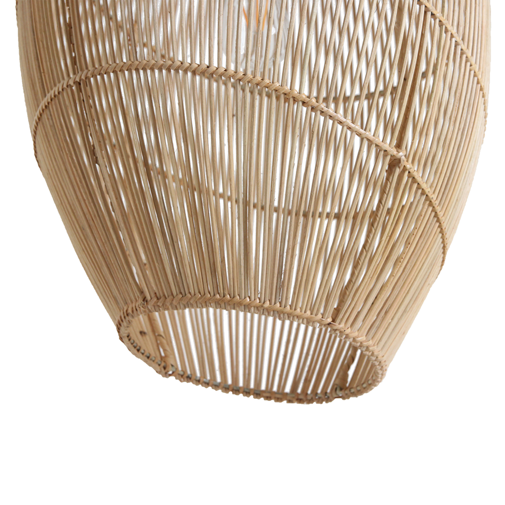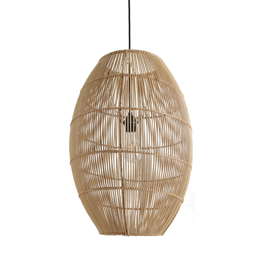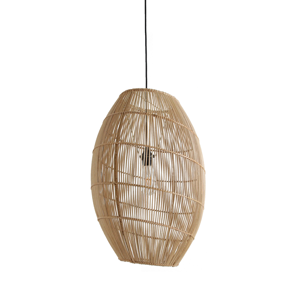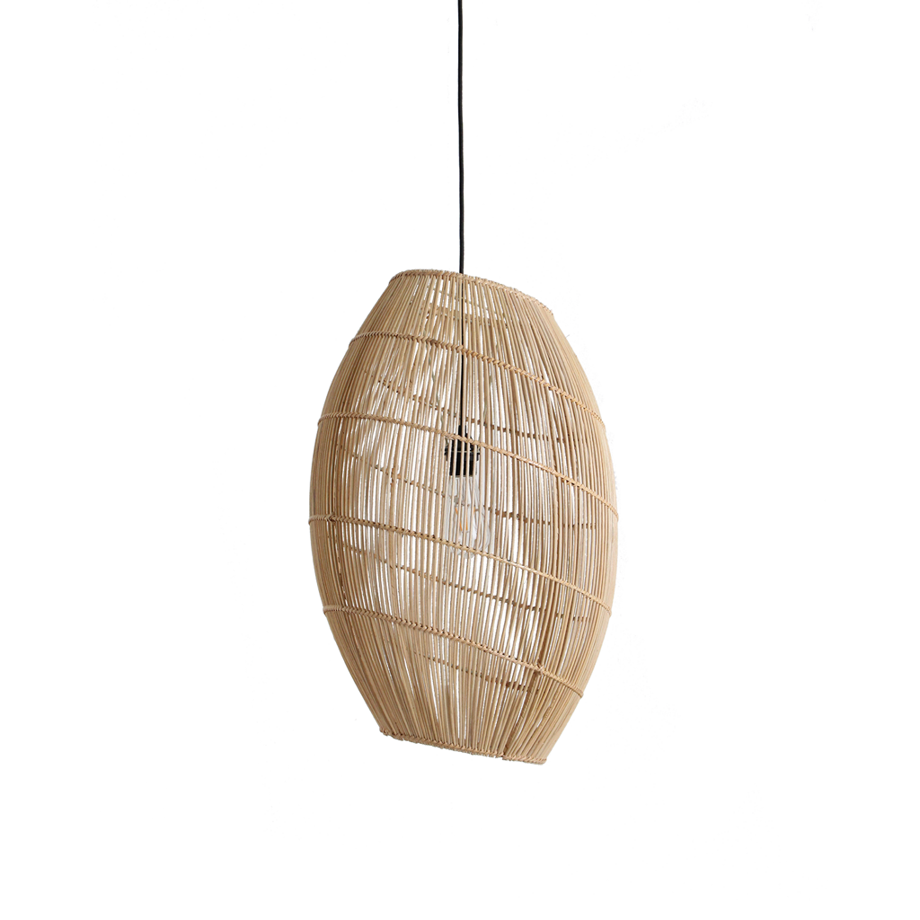 Elke Luna lamp wordt met de hand gemaakt van echt rotan, een natuurlijk materiaal dat groeit in de tropische bossen van Zuidoost-Azië. Rotan is sterk, licht en heeft een warme, natuurlijke kleur. Het weven van rotan is een ambacht dat al generaties lang wordt doorgegeven. De Luna collectie is geïnspireerd op vintage ontwerpen, maar heeft een eigentijdse twist die zorgt voor een frisse uitstraling. De lamp is afgewerkt met een katoenen snoer en een zwarte metalen plafondkap, zodat je hem direct kunt ophangen.