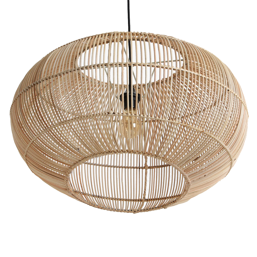 Elke Luna lamp wordt met de hand gemaakt van echt rotan, een natuurlijk materiaal dat groeit in de tropische bossen van Zuidoost-Azië. Rotan is sterk, licht en heeft een warme, natuurlijke kleur. Het weven van rotan is een ambacht dat al generaties lang wordt doorgegeven. De Luna collectie is geïnspireerd op vintage ontwerpen, maar heeft een eigentijdse twist die zorgt voor een frisse uitstraling. De lamp is afgewerkt met een katoenen snoer en een zwarte metalen plafondkap, zodat je hem direct kunt ophangen.