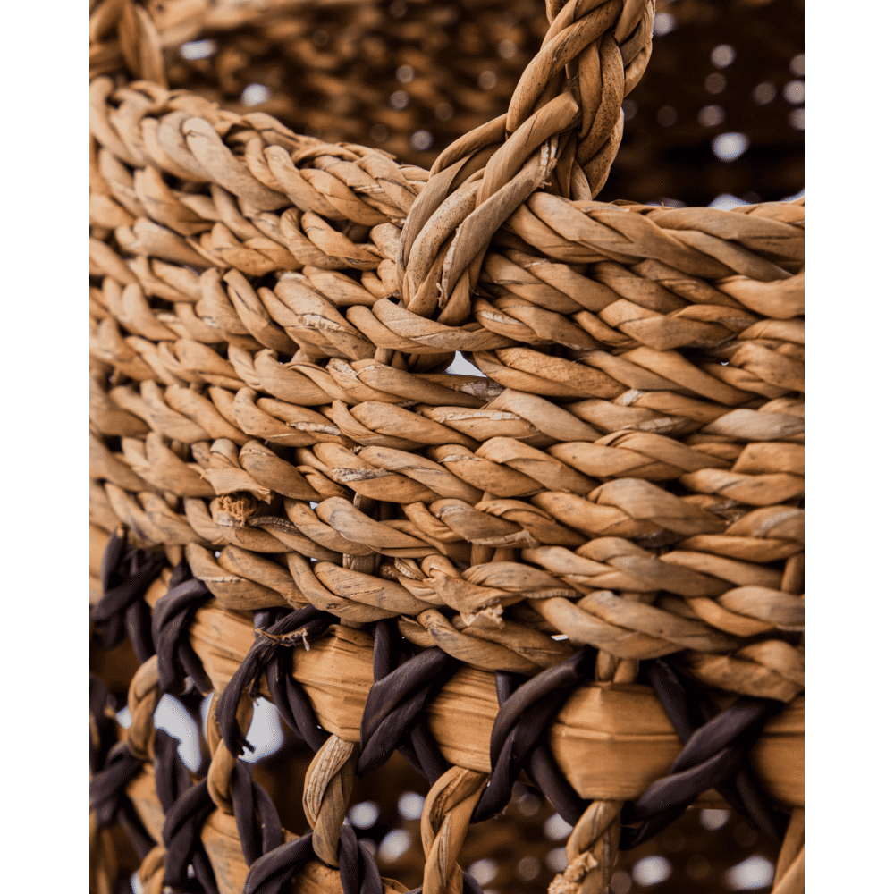 Gebruik de manden naast de bank, in de gang of als stijlvolle wasmand. Dankzij de stevige handvatten zijn ze makkelijk te verplaatsen. Functioneel én sfeervol — de ideale combinatie voor elk interieur dat zoekt naar warmte en karakter.