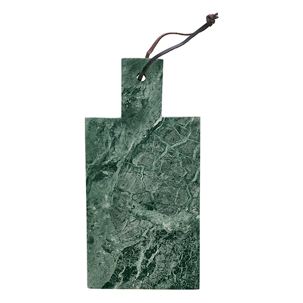 Een compacte marmeren plank die moeiteloos stijl toevoegt aan je keuken of eettafel. Gebruik ‘m voor het serveren van snacks of als decoratieve onderzetter voor een vaas of kaarsen. De donkergroene kleur met lichte aders zorgt voor een unieke, natuurlijke look.