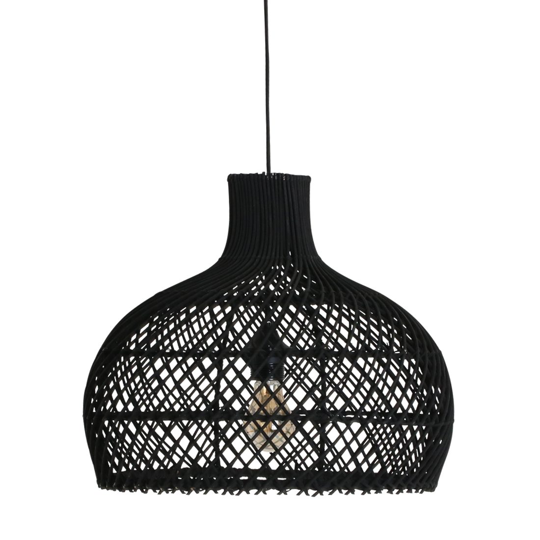 Breng sfeer in elke kamer met de Maze zwarte rotan hanglamp (42x42x36 cm). Overdag is het een stijlvolle blikvanger, maar zodra het licht aangaat, komt de lamp echt tot leven. Door de open geweven kap ontstaat een speels patroon van licht en schaduw op de muur en het plafond. Zo krijgt elke ruimte direct een warme en uitnodigende sfeer. Combineer meerdere Maze lampen voor een mooi geheel boven de eettafel of in de woonkamer. De Maze is verkrijgbaar in verschillende uitvoeringen: naast dit model van 42x42x36 cm is er ook een grotere variant van 57x57x36 cm, en een tijdloze natuurlijke uitvoering. In dezelfde collectie vind je ook andere vormen en maten, perfect om met elkaar te mixen voor een rustig maar sfeervol interieur.