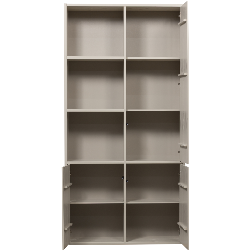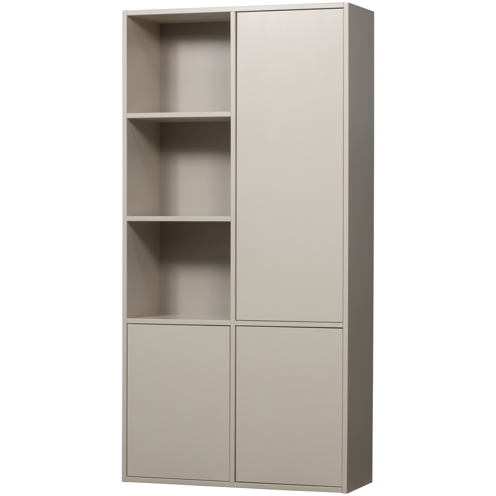 Met haar royale hoogte van 215 cm en breedte van 108 cm biedt Meggy volop opbergruimte. Aan de linkerzijde vind je drie open vakken die perfect zijn om jouw favoriete accessoires, boeken of mooie woondecoratie tentoon te stellen. De rechterzijde van de kast is voorzien van een lange deur die zich met een subtiele druk opent, achter welke je spullen netjes uit het zicht kunt opbergen. Dit maakt Meggy ideaal voor iedereen die houdt van een opgeruimd, stijlvol én persoonlijk interieur.