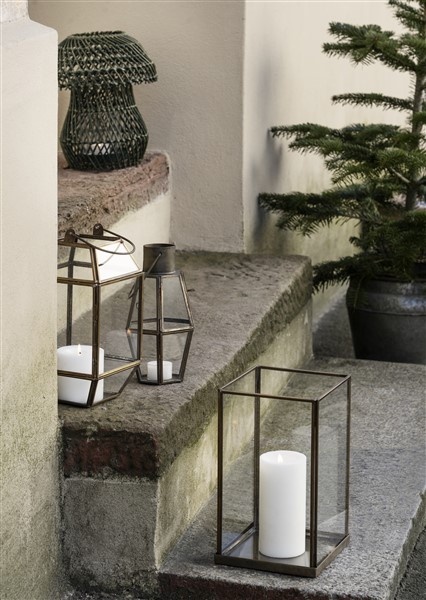 Metalen lantaarn – antiek messing en helder glas 13,5x13,5x27,5 cm