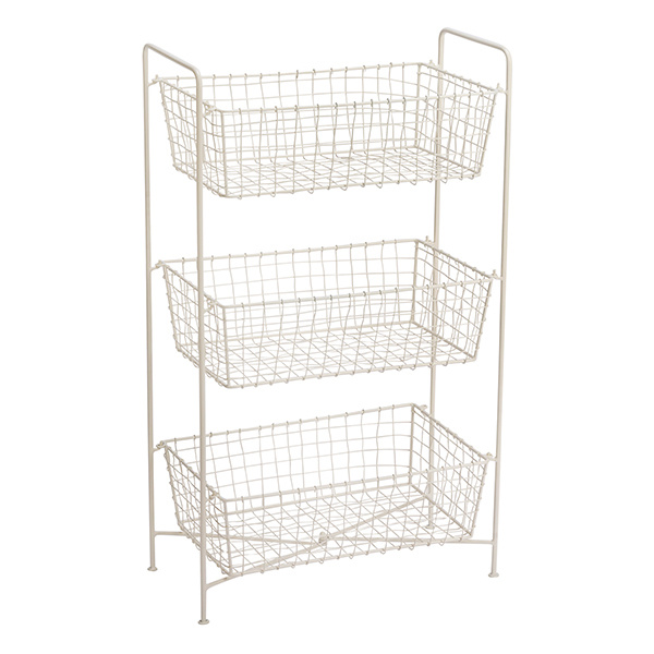 Geef je interieur een praktische én stijlvolle upgrade met dit metalen rek met drie manden van Madam Stoltz. Het rek is vervaardigd van stevig ijzer en afgewerkt in een zachte crèmekleur die naadloos aansluit bij een licht en natuurlijk interieur. Dankzij het open ontwerp heb je altijd overzicht en grijp je snel wat je nodig hebt – ideaal in de badkamer, keuken of hal. De drie bijpassende manden bieden volop ruimte voor handdoeken, verzorgingsproducten of keukentextiel.