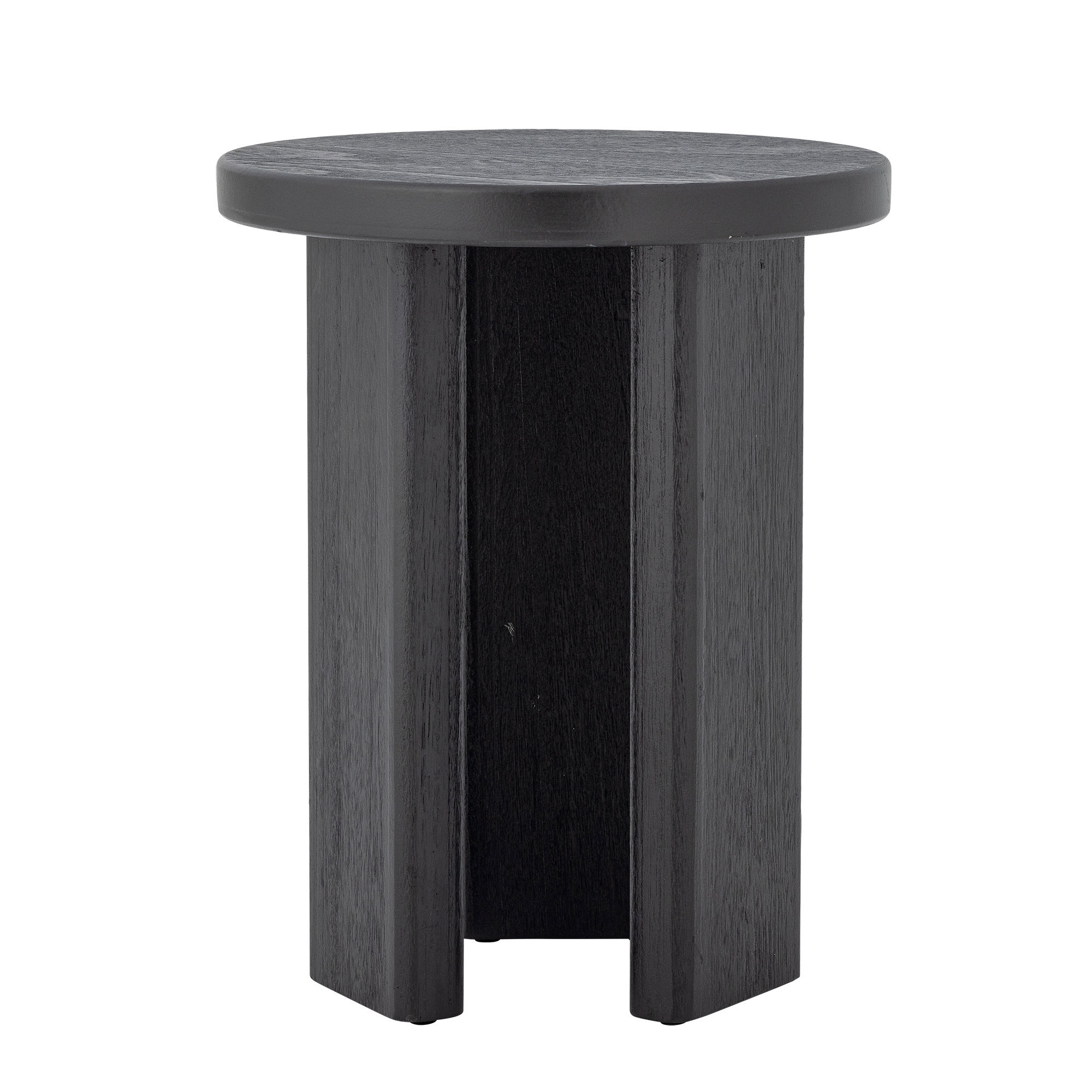 De Mimola bijzettafel van Bloomingville is een echte blikvanger voor wie houdt van strak en minimalistisch design. Gemaakt van zwart gelakt sparrenhout, met een architectonische basis die het ronde blad op speelse wijze ondersteunt. Perfect voor een modern interieur waar eenvoud en vorm samenkomen.