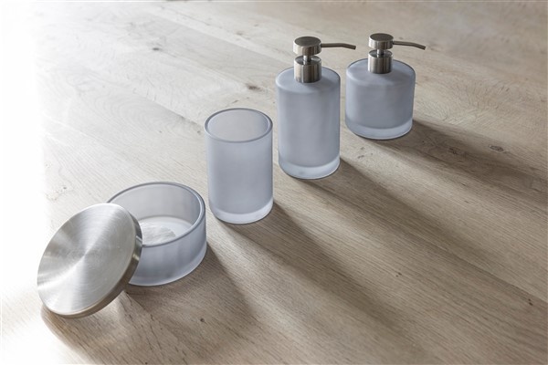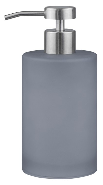 Hoge zeepdispenser in frosted glas met stalen pomp