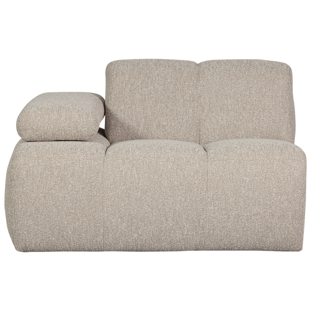 Geniet van comfort en stijl met de WOOOD Mojo 1-zits met arm links in boucle beige mélange