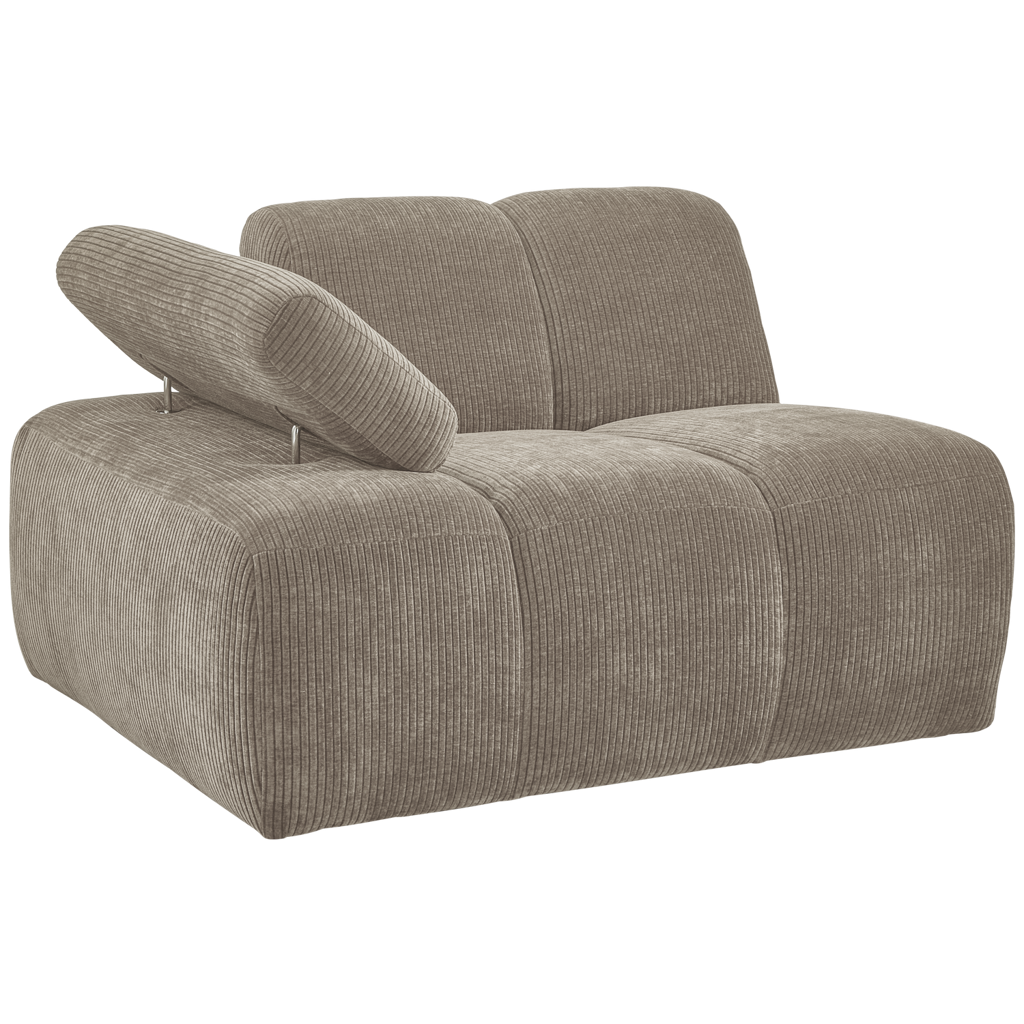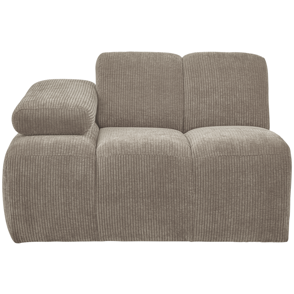 Geniet van de WOOOD Mojo 1-Zits met arm links in geweven ribstof donker zand