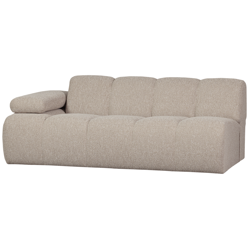 - Comfortabele bankenserie - Onderdeel van de Mojo-serie - Eindeloze combinatie en uitbreidingsmogelijkheden - H 74 cm x B 200 cm x D 97 cm Transformeer je woonkamer met de veelzijdige Mojo elementenbank uit de collectie van het Nederlandse merk WOOOD. De Mojo-serie biedt eindeloze mogelijkheden, van een royale hoekbank tot compacte zitoplossingen zodat je de perfecte bankopstelling kunt creeren voor jouw ruimte. Met zijn stijlvolle verticale stiksels voegt de Mojo een speelse en unieke twist toe aan elk interieur. Dankzij de handmatig verstelbare armleuningen biedt de Mojo extra flexibiliteit en comfort. Of je nu wilt ontspannen na een lange dag of gezellig wilt samenkomen met familie en vrienden, de Mojo is de plek waar je heerlijk kunt wegzakken en genieten. Creeer jouw ideale zitplek met de Mojo, waar stijl en comfort naadloos samenkomen. Het 2-zits element is te bestellen met de armleuning aan de linker- en rechterkant. Dit maakt dat de bank geschikt is voor diverse interieuropstellingen. Materiaal Liora is een verfijnde boucle stof met een subtiele kleurmelange en een stevige grip. Deze elegante stof, vervaardigd uit 100% polyester, heeft een Martindale van 100.000, wat betekent dat de stof geschikt is voor intensief woongebruik. De stevige boucle structuur zorgt ervoor dat de stoffering zijn vorm behoudt en lang meegaat, zelfs bij dagelijks gebruik. Afmetingen - Hoogte: 74 cm - Breedte: 200 cm - Diepte: 97 cm - Zithoogte: 45 cm - Zitbreedte: 160 cm - Zitdiepte: 60 cm - Hoogte rugleuning: 39 cm - Diepte rugleuning: 22 cm - Armleuning hoogte vanaf vloer: 80 cm - Armleuning hoogte vanaf zitting: 14 cm - Diepte armleuning: 81 cm - Poothoogte: 2,5 cm - Draaggewicht: 120 kg - Gewicht: 55 kg Onderhoud De boucle stof is een eenvoudige stof in onderhoud. Bij vlekken is het aangeraden om te deppen, wrijving kan zorgen voor lichte plekken. Meeste vloeistoffen zijn te verwijderen met lauw water. Maak gebruik van een zachte, ronddraaiende beweging van buiten naar binnen. Houd de stof eenvoudig stofvrij met een speciale meubelborstel van de stofzuiger. Als de stof losgehaald kan worden middels een rits is wassen op 30 graden mogelijk. Levering Dit item wordt geleverd in een pakket. Plaats bij harde vloeren viltglijders onder de poten. Dit voorkomt beschadigingen aan de vloer.Materiaal | 100% pes |