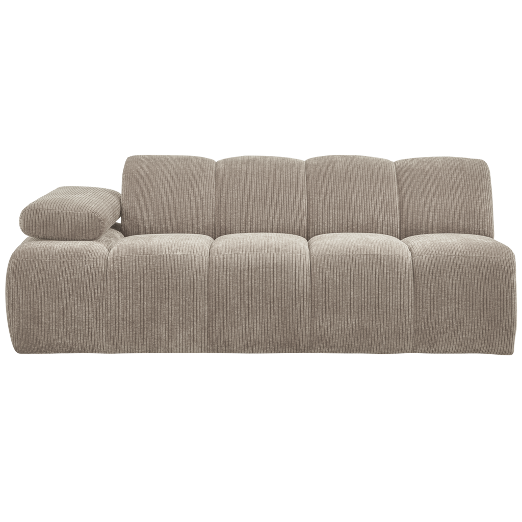 - Comfortabele bankenserie - Onderdeel van de Mojo-serie - Eindeloze combinatie en uitbreidingsmogelijkheden - H 74 cm x B 200 cm x D 97 cm Transformeer je woonkamer met de veelzijdige Mojo elementenbank uit de collectie van het Nederlandse merk WOOOD. De Mojo-serie biedt eindeloze mogelijkheden, van een royale hoekbank tot compacte zitoplossingen zodat je de perfecte bankopstelling kunt creeren voor jouw ruimte. Met zijn stijlvolle verticale stiksels voegt de Mojo een speelse en unieke twist toe aan elk interieur. Dankzij de handmatig verstelbare armleuningen biedt de Mojo extra flexibiliteit en comfort. Of je nu wilt ontspannen na een lange dag of gezellig wilt samenkomen met familie en vrienden, de Mojo is de plek waar je heerlijk kunt wegzakken en genieten. Creeer jouw ideale zitplek met de Mojo, waar stijl en comfort naadloos samenkomen. Het 2-zits element is te bestellen met de armleuning aan de linker- en rechterkant. Dit maakt dat de bank geschikt is voor diverse interieuropstellingen. Materiaal De Remy Rib is een moderne stof die een luxe uitstraling biedt. Dankzij de bijzondere jacquard weeftechniek heeft de stof een rijke textuur en een fluweelachtig uiterlijk. Onze Remy Ribstof is gemaakt van 100% polyesterdraad, wat zorgt voor een zachte touch. Met een Martindale score van 80.000 hoef je je geen zorgen te maken over krassen of pillen. Bovendien heeft de ribstof een verstevigde backing en oogt volumineus vanwege de brede banen. Afmetingen - Hoogte: 74 cm - Breedte: 200 cm - Diepte: 97 cm - Zithoogte: 45 cm - Zitbreedte: 160 cm - Zitdiepte: 60 cm - Hoogte rugleuning: 39 cm - Diepte rugleuning: 22 cm - Armleuning hoogte vanaf vloer: 80 cm - Armleuning hoogte vanaf zitting: 14 cm - Diepte armleuning: 81 cm - Poothoogte: 2,5 cm - Draaggewicht: 120 kg - Gewicht: 55 kg Onderhoud Zorg dat je bij ribstof altijd vlekken verwijdert met de rib mee. Deppen met een lichtvochtige, schone doek laat de meeste vlekken eenvoudig verwijderen. Is de vlek hardnekkiger? Laat een vochtige doek de vlek absorberen. Het eventueel naborstelen met een zachte borstel zal ervoor zorgen dat de ribstof heerlijk zacht blijft aanvoelen. Als de stof losgehaald kan worden middels een rits is wassen op 30 graden mogelijk. Levering Dit item wordt geleverd in een pakket. Plaats bij harde vloeren viltglijders onder de poten. Dit voorkomt beschadigingen aan de vloer.Materiaal | 100% pes |
