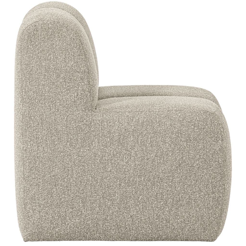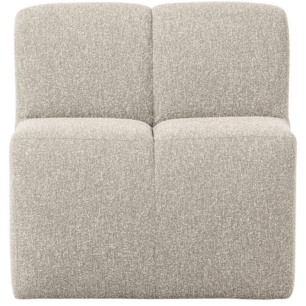Bouclé is een praktische en onderhoudsvriendelijke stof. Bij vlekken dep je eenvoudig met lauw water en een zachte doek – wrijven wordt afgeraden om kleurverschil te voorkomen. Houd de stof schoon met een meubelborstel op de stofzuiger. Indien afritsbaar, kan de hoes gewassen worden op 30 graden.