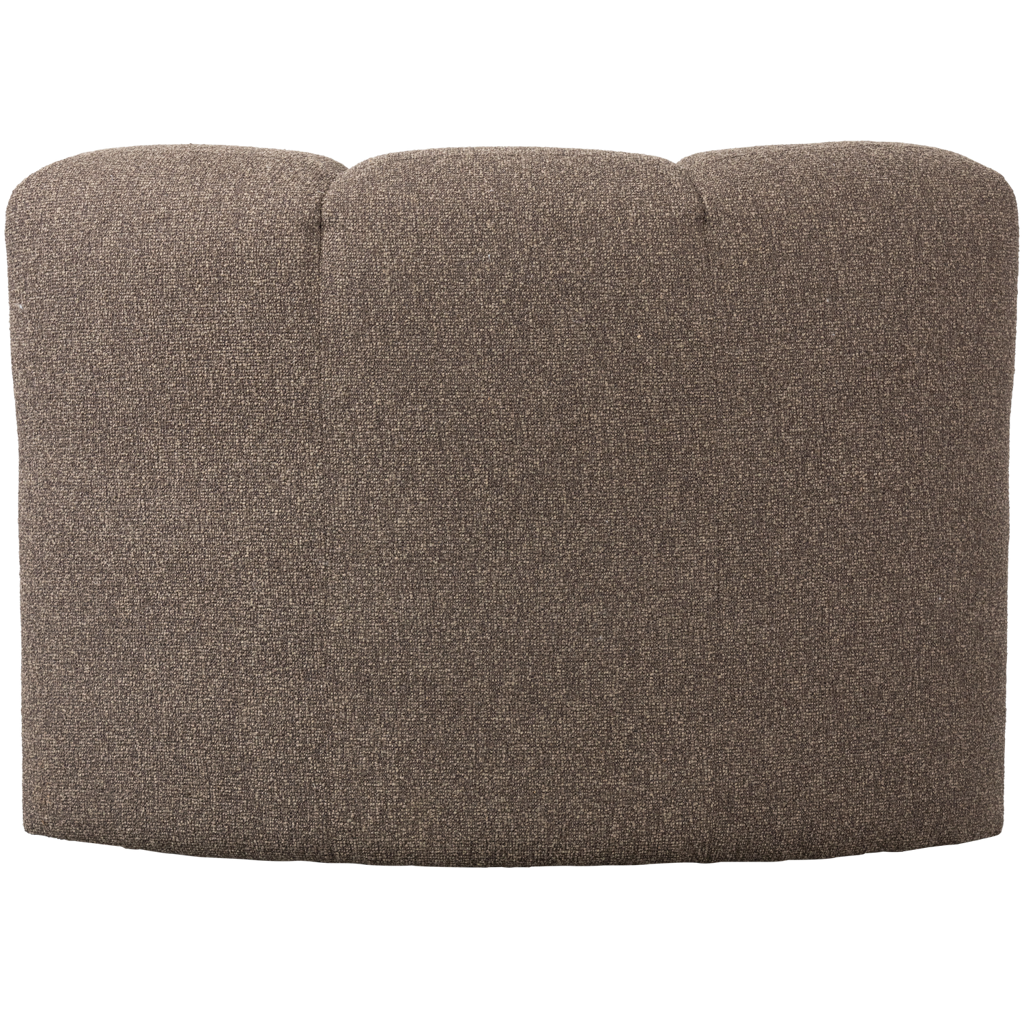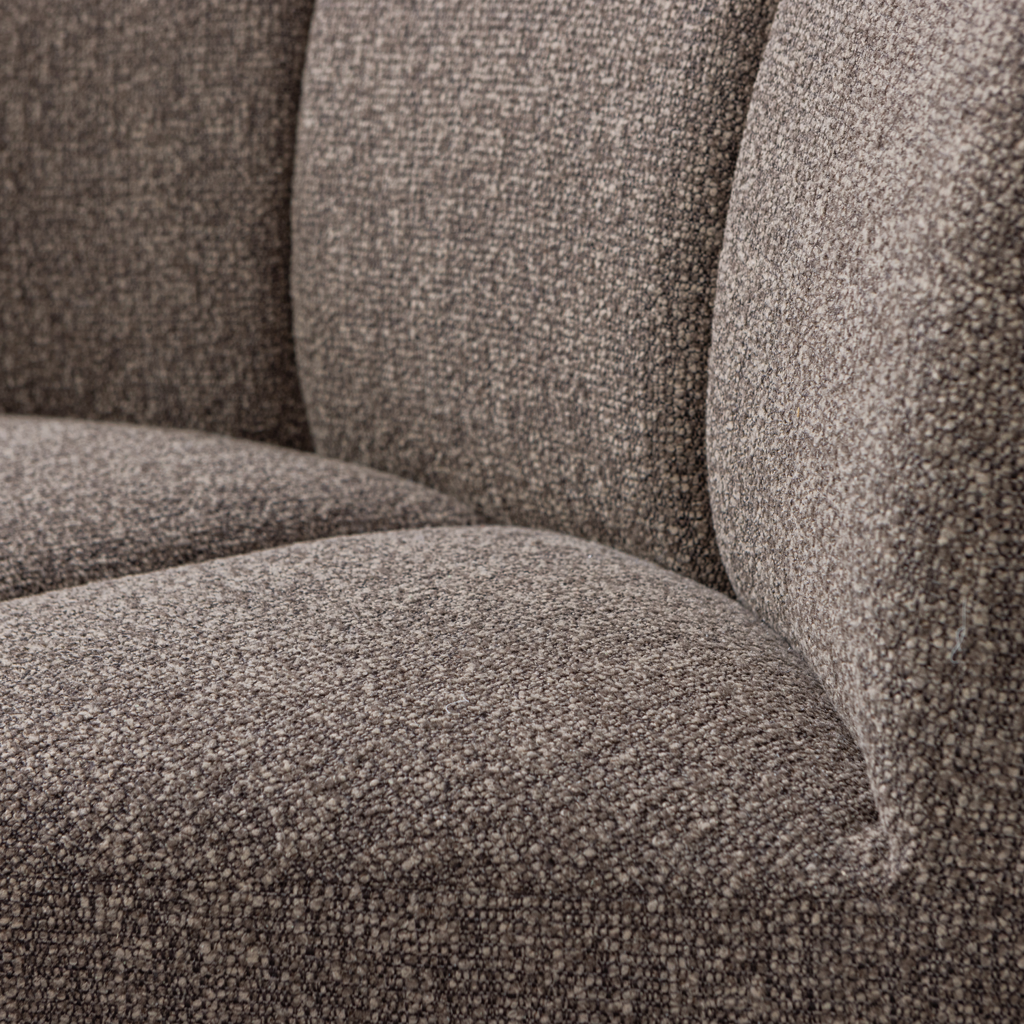 De bank is bekleed met de rijke bouclé stof Liora, uitgevoerd in een warme bruin melange tint. Deze stof is niet alleen zacht en stijlvol, maar ook uitzonderlijk sterk. Met een Martindale van 100.000 is de stof bestand tegen intensief gebruik en blijft hij jarenlang mooi.