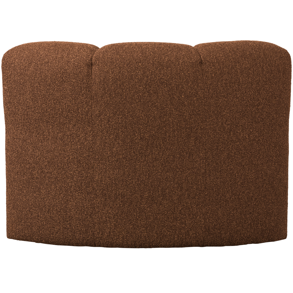 De bank is bekleed met de rijke bouclé stof Liora, uitgevoerd in een warme roestbruin melange tint. Deze stof is niet alleen zacht en stijlvol, maar ook uitzonderlijk sterk. Met een Martindale van 100.000 is de stof bestand tegen intensief gebruik en blijft hij jarenlang mooi.