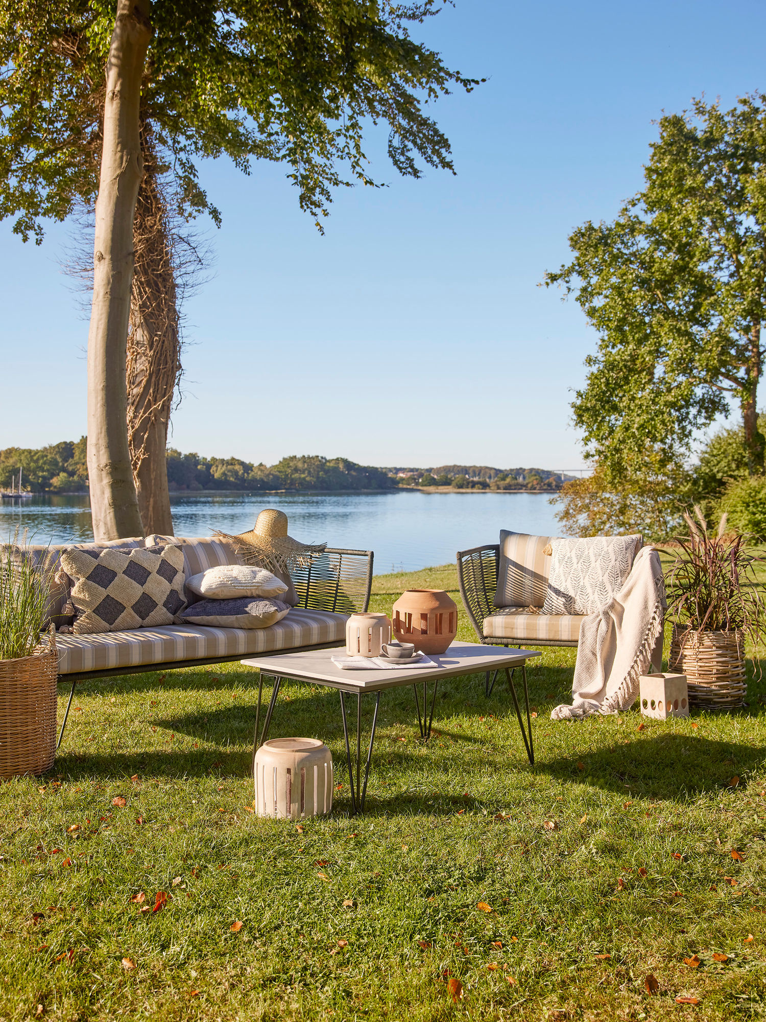 Dankzij het vorstbestendige frame en de waterafstotende rope kun je de Mundo Lounge Chair met een gerust hart buiten gebruiken. Wel blijft hij het mooist als je hem beschermt tegen direct zonlicht om verkleuring te voorkomen.