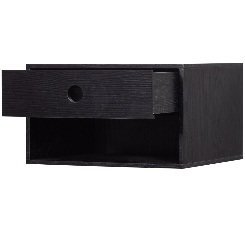 Minimalistisch & zwevend – WOOOD Nancy hangend nachtkastje in zwart