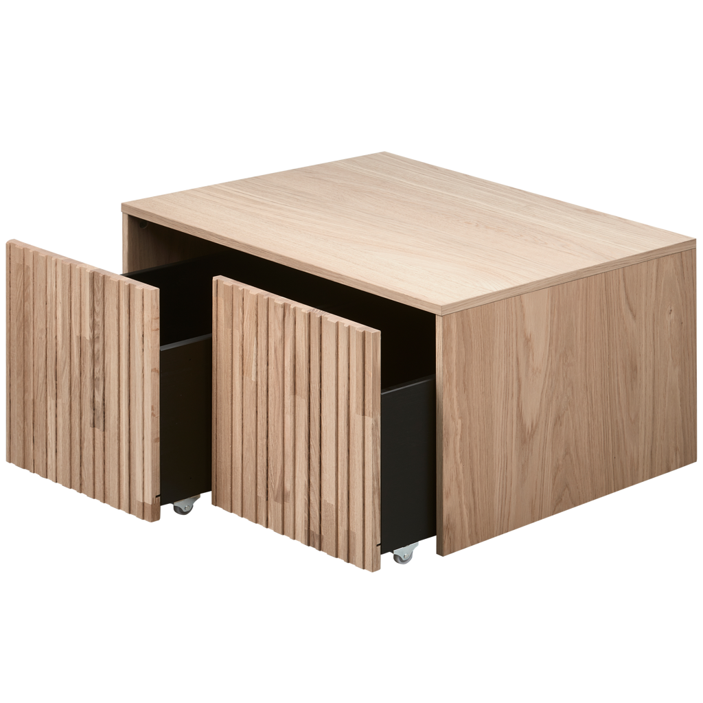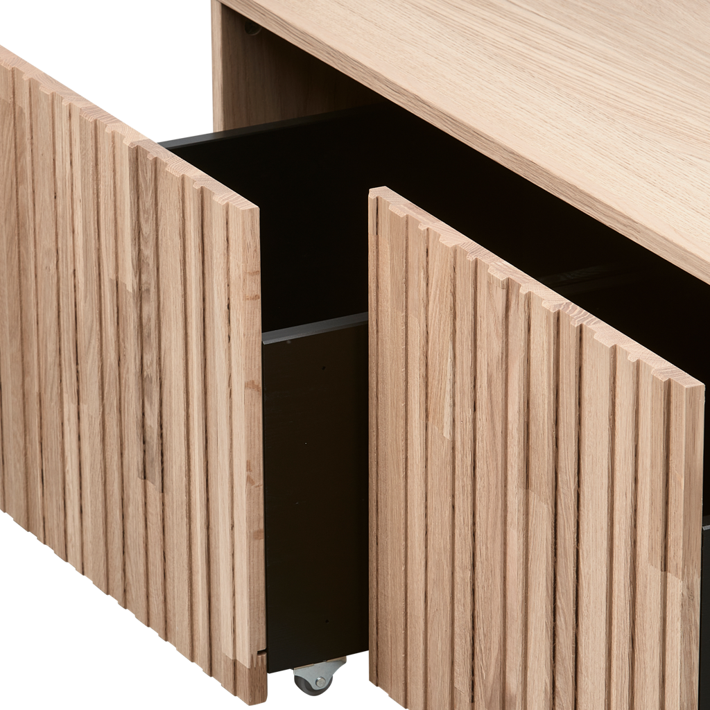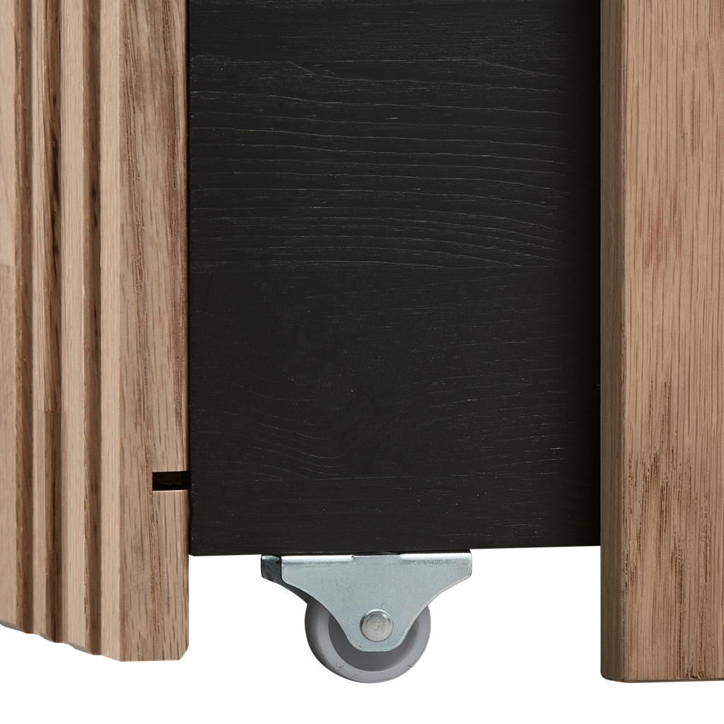 Behandeld eikenhout is eenvoudig in onderhoud. Houd het meubel regelmatig stofvrij met een schone, droge doek. Gebruik altijd onderzetters onder glazen of hete pannen om de kwaliteit van het hout te behouden.