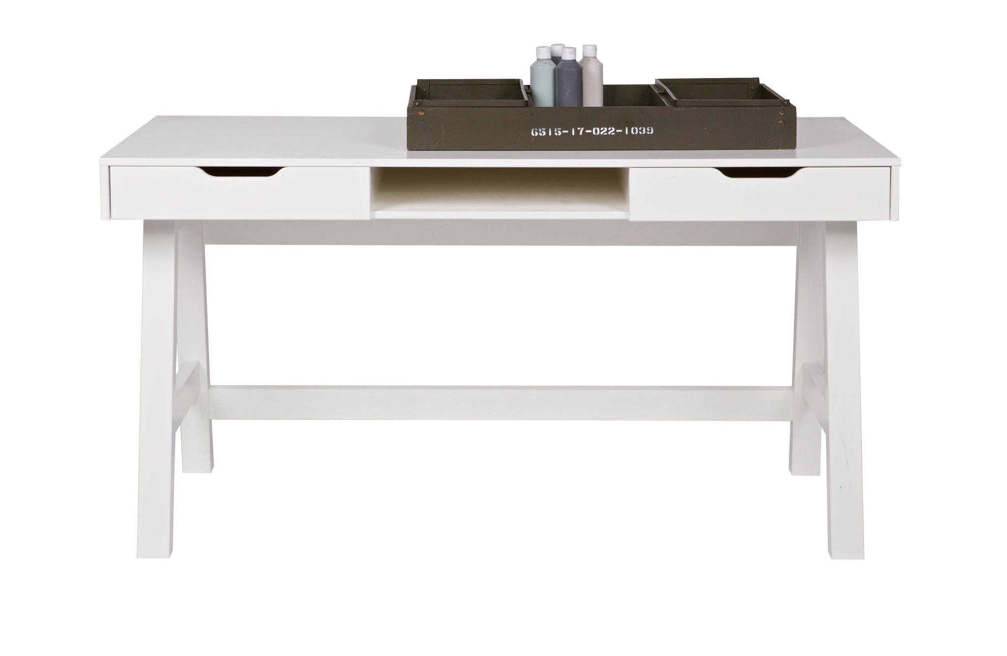 WOOOD bureau Nikki (hxbxd) 75x140x62 cm is een onderdeel van de slaapkamerserie Nikki van het merk WOOOD. Creëer de perfecte slaapkamer met deze serie Nikki. Het bureau Nikki heeft 2 handige laden met een metalen ladegeleider en een open vak in het midden. Het bureau is gemaakt van massief grenen, gelakt in de kleur wit en heeft een geborstelde afwerking. Bij het borstelen van grenen meubelen wordt de nerf sterk geaccentueerd en ontstaat een doorleefd oppervlak.