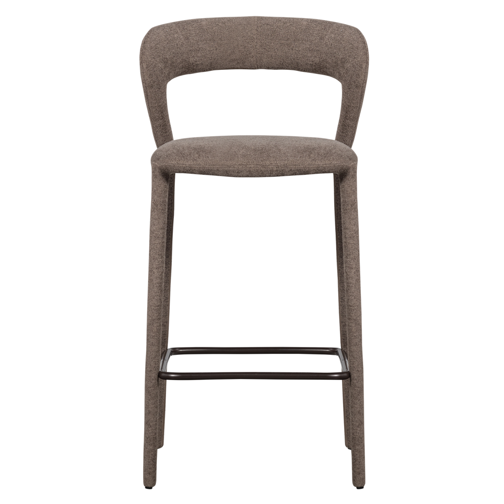 Deze barstoel biedt een stevige, prettige zit dankzij de ergonomische rugleuning en comfortabele zitting. De quick geweven stof in taupe heeft een fijne kleurmelange en voelt zacht aan, wat zorgt voor een warme, uitnodigende sfeer. De Noble is volledig bekleed, waardoor hij in elk interieur een luxe eenheid vormt.