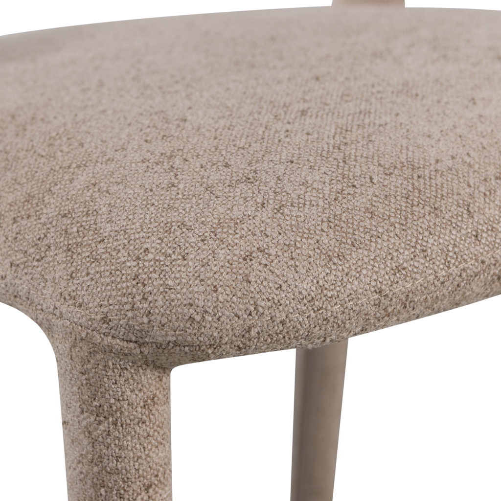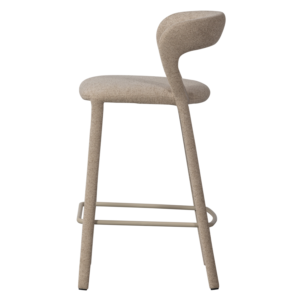 De WOOOD Noble barstoel is een stijlvolle toevoeging aan elke bar of kookeiland. Volledig bekleed in een zachte zandkleurige stof en met elegant afgeronde vormen straalt deze barstoel rust en luxe uit. De subtiele kleurnuances in de geweven stof geven het geheel een rijke uitstraling die moeiteloos aansluit bij een modern of Scandinavisch interieur.