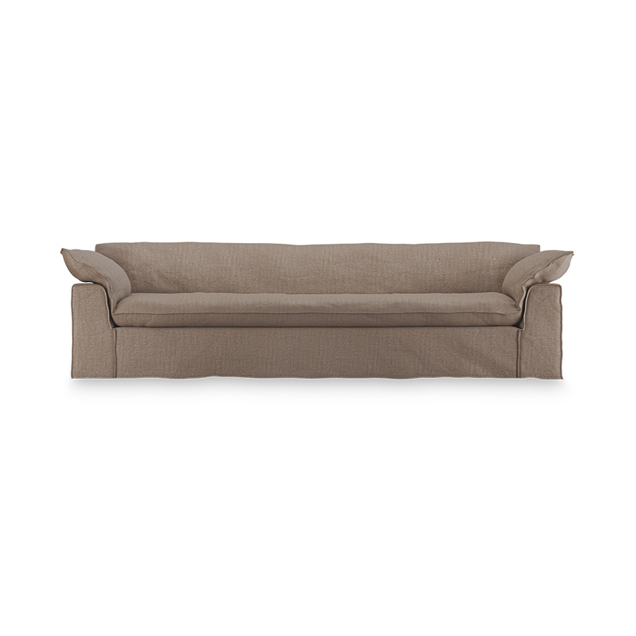 The Nomad couch was inspired by the effortless charm of Mediterranean boutique hotels, where every detail feels curated yet inviting. We imagined rooms where linen sofas beckoned you to sink into their soft folds, where relaxation was the essence of luxury. This piece blends the warmth of southern Europe with pared-down functionality, offering comfort and style without pretense—a true reflection of spaces designed to make you feel at home.Sink into pure comfort with the Nomad Couch, designed for those who love a deep, cosy seat that offers both support and relaxation. With its removable cover—also available separately—you can effortlessly refresh the look of your sofa. Crafted with both comfort and longevity in mind, this sofa is perfect for everyday living, combining timeless design with practical functionality. Whether you're lounging solo or entertaining guests, the Nomad Couch guarantees lasting comfort and style. Material: Polyester Material: Polyester Remark: This item is not UK fire compliant. - Offline sales only. - Please note that with repeat orders of the same sofas/elements there is a chance of colour variation in the fabric. - Dimensional deviations of up to 3% are possible. Regulations: Fabric specifications - Composition faceside: 97% polyester, 3% linen; Material weight: 480 g/lm; Abrasion resistance (EN ISO 12947 1&2): 100.000 cycles Martindale; Pilling resistance (EN ISO 12945-2): Class 4-5; Lightfastness (EN ISO B02): Class 5 Characteristic: Foodsafe: X Dishwasher proof: X Microwave proof: X Water resistant: Seating height (cm): 47 Seating depth (cm): 68 Seating width (cm): 233 Height armrests (cm): 68 Backrest height (cm): 81 Backrest height (cm): 81