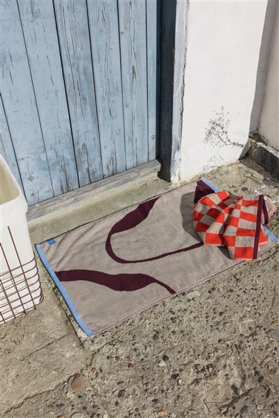 Geef je badkamer een creatieve twist met de NOVA ARTE badmat in wijnrood en zand. Het abstracte patroon — met penseelachtige accenten in warm wijnrood op een zachte zandkleurige achtergrond — zorgt voor een verfijnde, moderne uitstraling. De lichtblauwe bies rondom de mat geeft een speels contrast en maakt het ontwerp helemaal af.