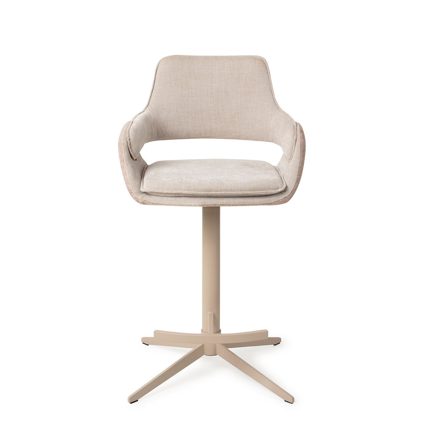 Upgrade je Eetplek met de Oketo Barkruk Geef je eetruimte een flinke boost met de Oketo barkruk. Deze parel van een stoel combineert twee verschillende stoffen in ton-sur-ton kleuren, waardoor een harmonieuze look ontstaat die je interieur naar een hoger niveau tilt. Het kleurrijke metalen frame voegt een moderne touch toe, terwijl de 360 graden draaifunctie met automatische terugkeer zorgt voor extra gemak. Stijlvol Comfort Het ton-sur-ton effect van de bekleding geeft de Oketo barkruk een echte wow-factor. Geniet van zowel comfort als stijl dankzij de zachte en duurzame stoffen bekleding, ideaal voor langdurig zitplezier. De combinatie van twee verschillende stofsoorten voegt een uniek en verfijnd tintje toe aan het ontwerp van de stoel. Gedurfd en Modern Het kleurrijke metalen frame van de Oketo barkruk is een statement op zich. Met zijn gedurfde uitstraling voegt het een vleugje moderne flair toe aan elke ruimte. En dankzij de keuze tussen twee zithoogtes - Counter (L) met 65 cm of Bar (H) met 75 cm - vind je altijd de perfecte pasvorm voor jouw eettafel of bar. Kies jouw Stijl Met vier prachtige kleurvariaties om uit te kiezen, is er een Oketo barkruk die perfect past bij jouw smaak en interieur: Driftwood Drive: Natuurlijk en warm, met een licht ecru frame. Midori Green: Levendig en fris, met een pastelgroen frame. Chestnut Chase: Diep en verfijnd, met een zacht, lichtbruin frame. No Grey Mouse: Tijdloos en elegant, met een mediumbruin frame. Eenvoudig te Monteren En het beste van alles? De Oketo barkruk is eenvoudig in elkaar te zetten, zodat je binnen de kortste keren kunt genieten van je nieuwe favoriete zitplek. Upgrade je eetervaring met de Oketo barkruk en geef je interieur een kleurrijke twist!