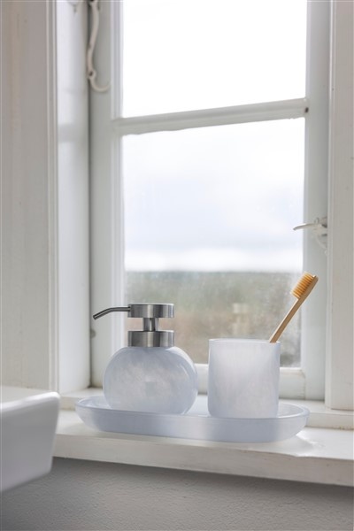 De OPAL tandenborstelhouder in lichtblauw geeft je badkamer een gevoel van lichtheid en kalmte. Het opaalglas vangt licht op een zachte manier en laat het langzaam vervloeien over het oppervlak. De koele tint en ronde vormen dragen bij aan een frisse, moderne look.