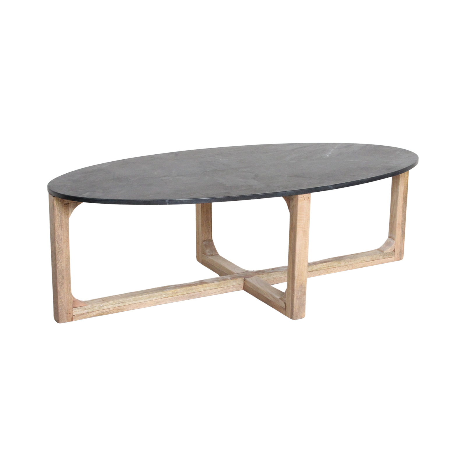 Ovale Salontafel – Zwart Marmer en Mangohout