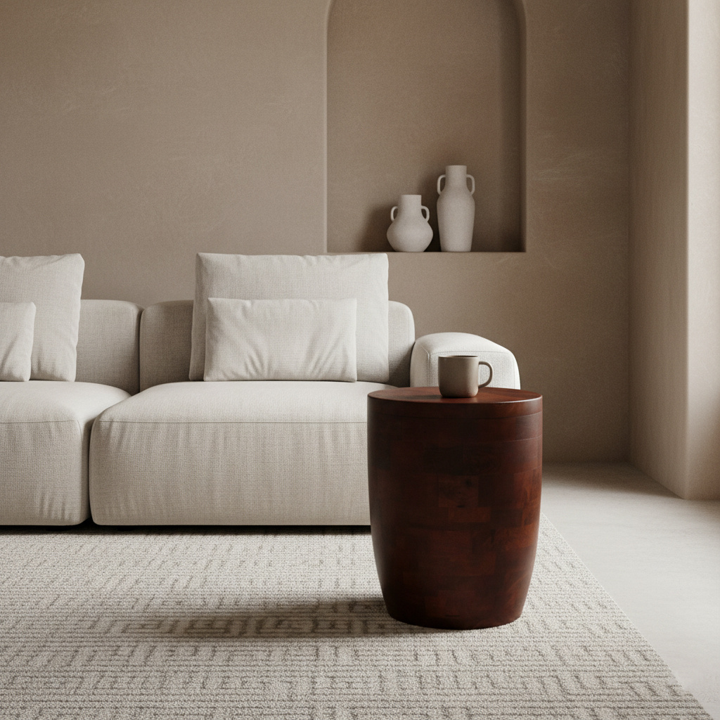 Pacific mangohouten kruk of bijzettafel – natuurlijke charme met een moderne twist