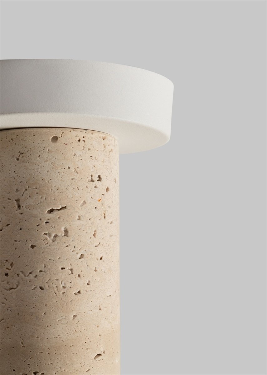 Witte plafondlamp van travertin natuursteen