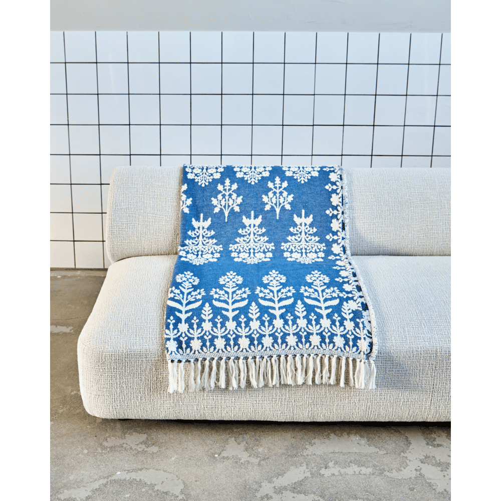De Mazzo plaid is geweven van zacht katoen en geeft met zijn prachtige blauwe kleur en handgemaakte details een warme, gezellige indruk. Drapeer hem over de bank voor een vleugje kleur of leg hem over je bed als een extra, zachte laag.