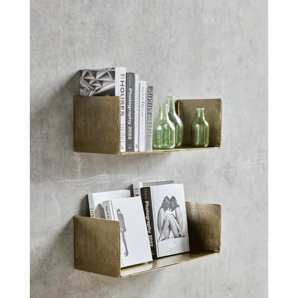 Met deze handgemaakte, gouden wandplank van aluminium geef je ieder interieur direct een luxueuze touch. Het stoere, gesloten design combineert kracht met verfijning en maakt van je favoriete boeken, planten of accessoires echte blikvangers. Gebruik de plank als podium voor kunst in de woonkamer, als chic nachtkastje in de slaapkamer of als stijlvolle oplossing voor je mooiste servies in de keuken.