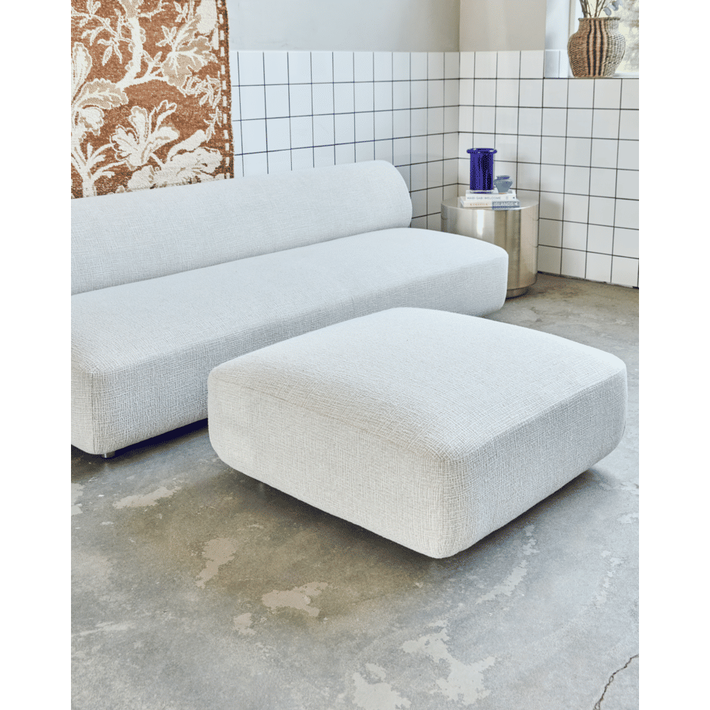 Een zachte poef met een afgerond, geometrisch design en een aangename, stoffen bekleding. De Feel poef is perfect als voetenbank, extra zitplaats of als een zacht accent dat prachtig past bij de Feel-bankenserie.
