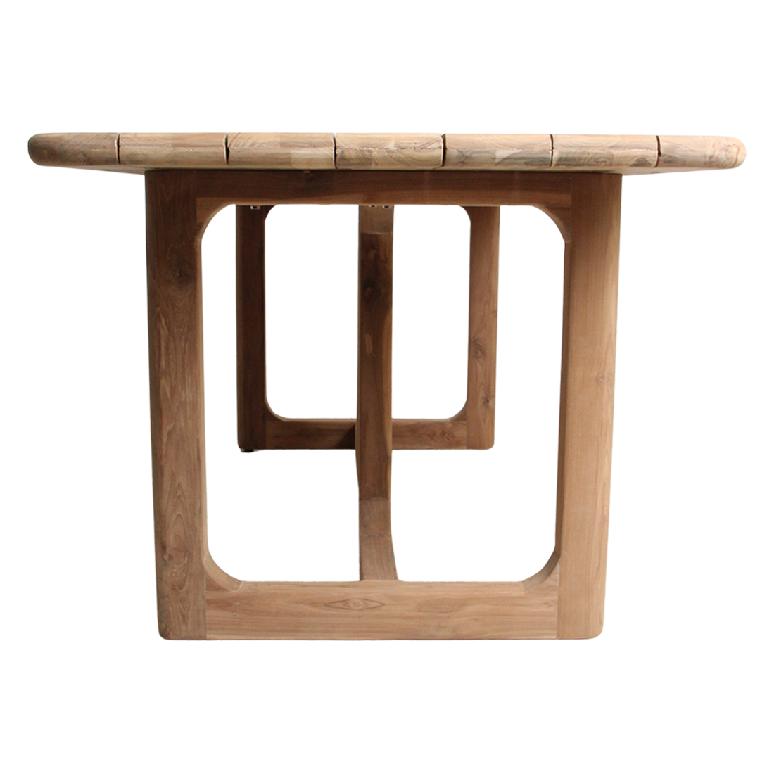 Creëer een warme en uitnodigende buitenruimte met de Primavera teakhouten tuintafel. Het gerecyclede teakhout geeft een natuurlijke uitstraling en de afgeronde uiteinden zorgen voor een zachte, elegante vorm. Beschikbaar in 200 cm en 240 cm, ideaal voor gezellige etentjes in de tuin of borrels op zonnige dagen. Deze duurzame tuintafel past perfect bij onze teakhouten tuinstoelen uit dezelfde collectie.