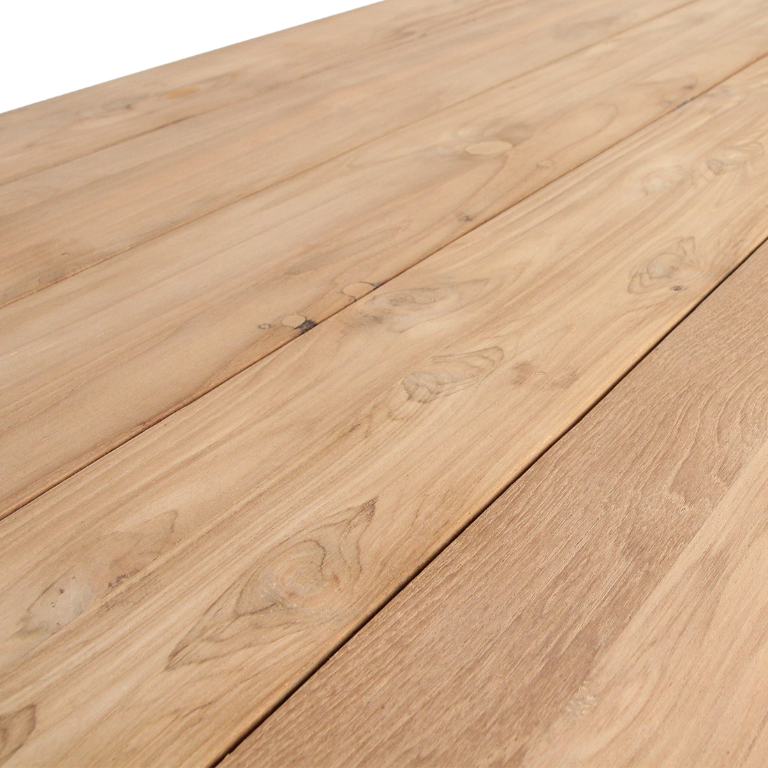 Teakhout is van nature goed bestand tegen buitenomstandigheden en behoeft weinig onderhoud. Laat je het onbehandeld, dan ontwikkelt het vanzelf een mooie, zilvergrijze patina. Wil je liever de warme, originele kleur behouden? Breng dan af en toe teakolie aan. Gebruik altijd onderzetters en maak gemorste vloeistoffen direct droog voor het mooiste resultaat.