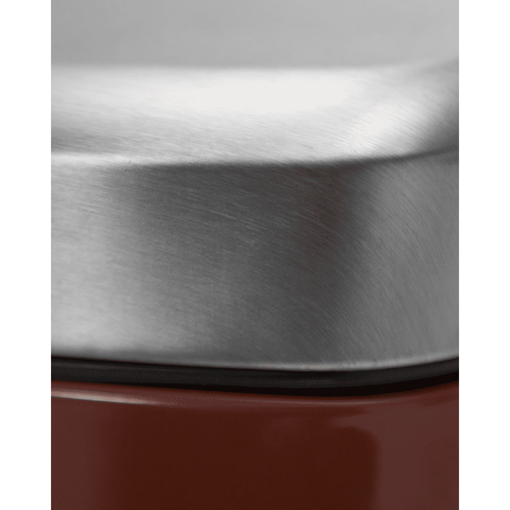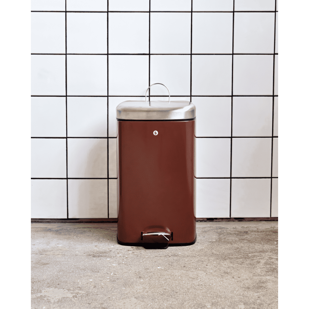 De Sort prullenbak is gemaakt van staal en afgewerkt in een diepe, bruine tint. Met zijn strakke lijnen is het een moderne en subtiele oplossing die orde schept in je keuken of op kantoor.