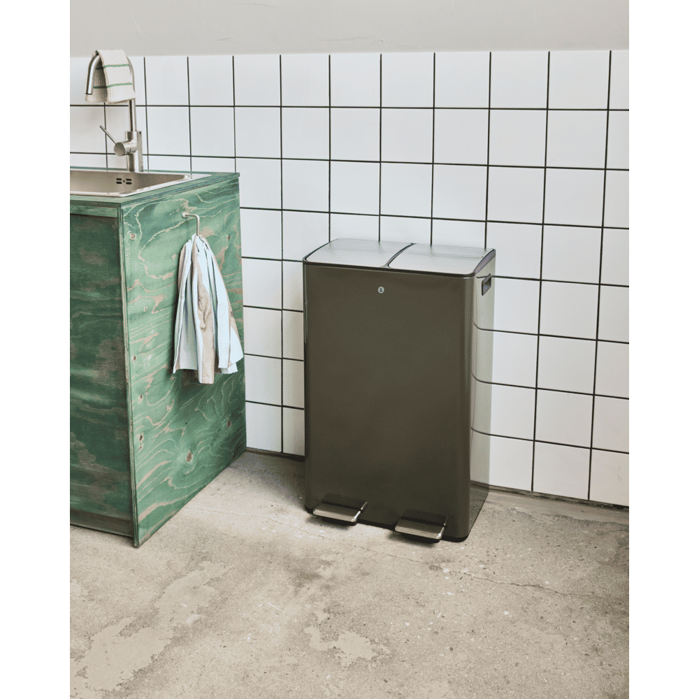 Maak van afval scheiden een eenvoudige en stijlvolle klus met de groene Sort XL prullenbak. Het is gemaakt van stevig staal met accessoires van gerecycled polypropyleen (PP) en biedt een minimalistische oplossing die perfect is voor in de keuken, de bijkeuken of op kantoor.