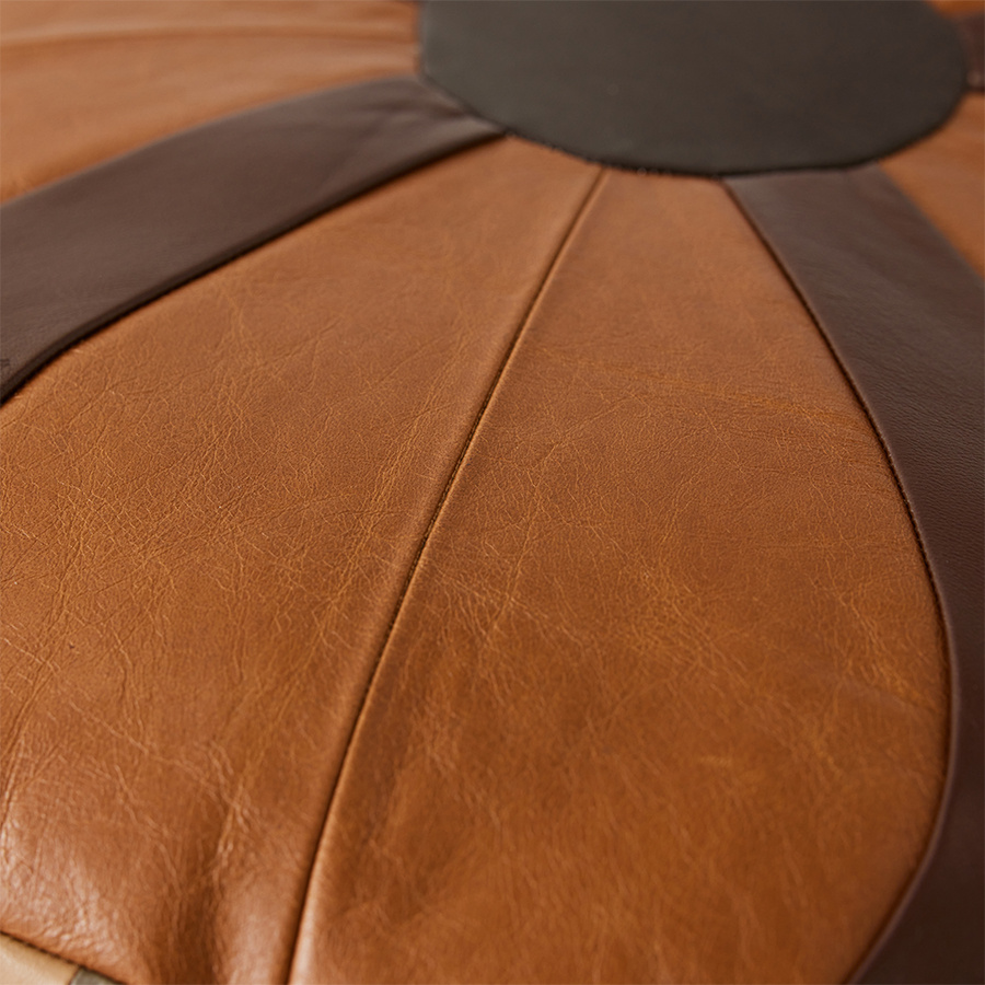 Maak kennis met het Retro Patch-kussen, een prachtig stukje functionele kunst dat de ziel van retro-design rechtstreeks in het hart van uw huis brengt. Dit ultra-retro ronde (vloer)kussen is zorgvuldig vervaardigd uit een patchwork van rijk leer, waarbij elk stuk is geselecteerd om een harmonieuze en luxueuze zitervaring te creëren. Dit vloerkussen is meer dan alleen een accessoire, het is een veelzijdig stuk dat gebruikt kan worden als extra zitplaats voor gasten, een comfortabele voetensteun of een stijlvol accent in elke woonruimte. De duurzame constructie zorgt ervoor dat het jarenlang een steunpilaar in je huis zal zijn, terwijl de leren patches mooi zullen verouderen en met elke vouw en tint een verhaal vertellen. materiaal: Hoes: 100% Leer, Vulling: Katoenafval