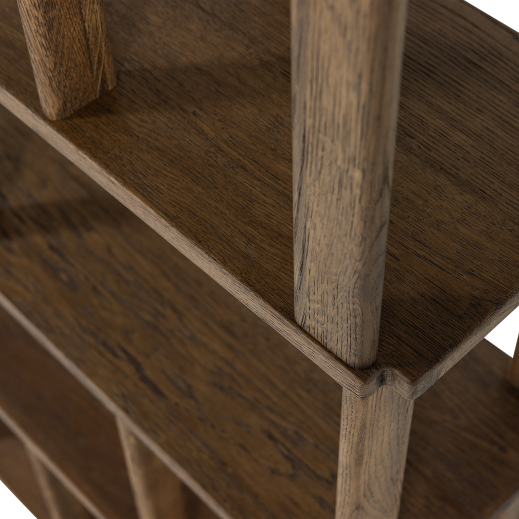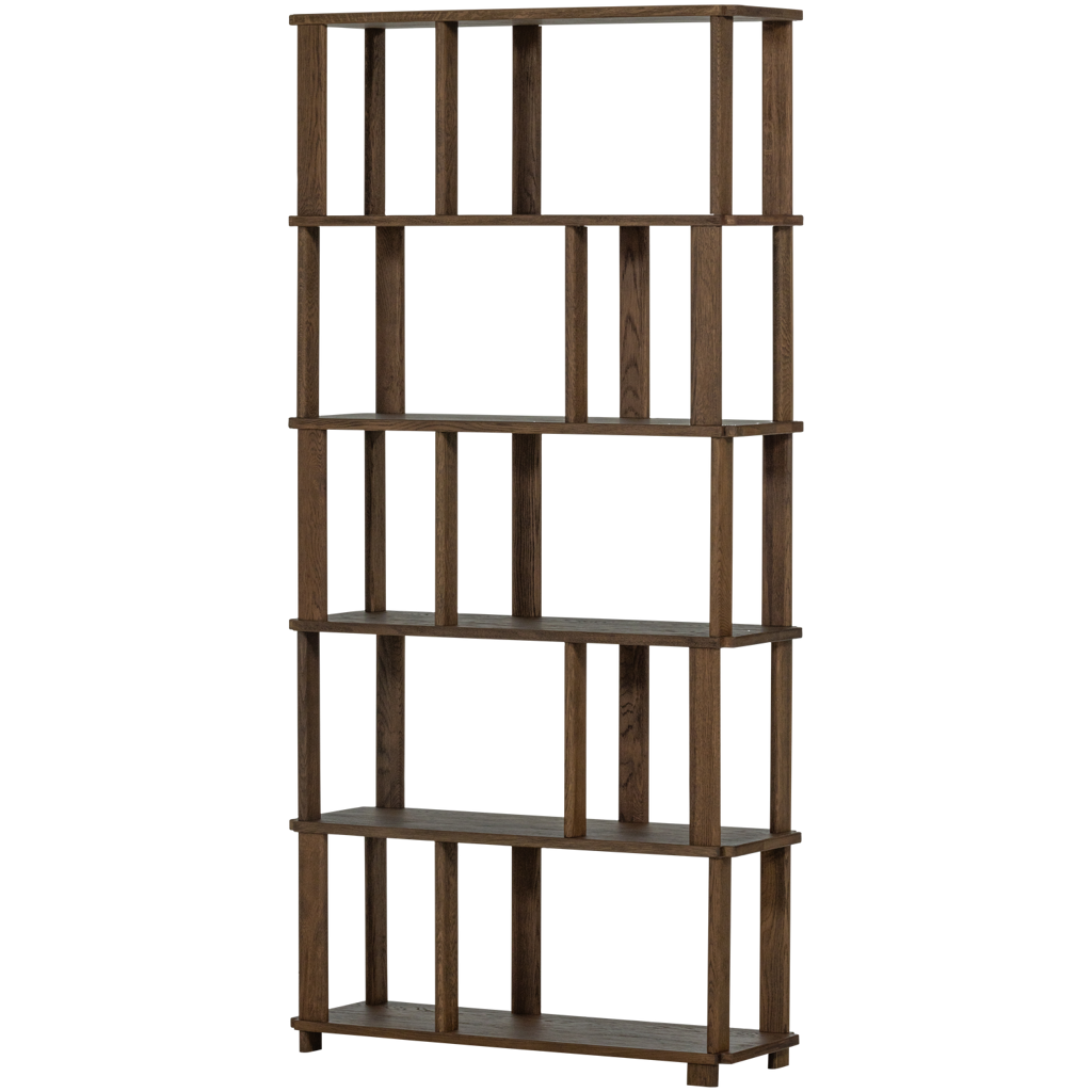 Deze open boekenkast van WOOOD combineert moderniteit met een speels design. Gemaakt uit eikenhout en voorzien van royale vakverdelingen – perfect om boeken en accessoires stijlvol te presenteren.