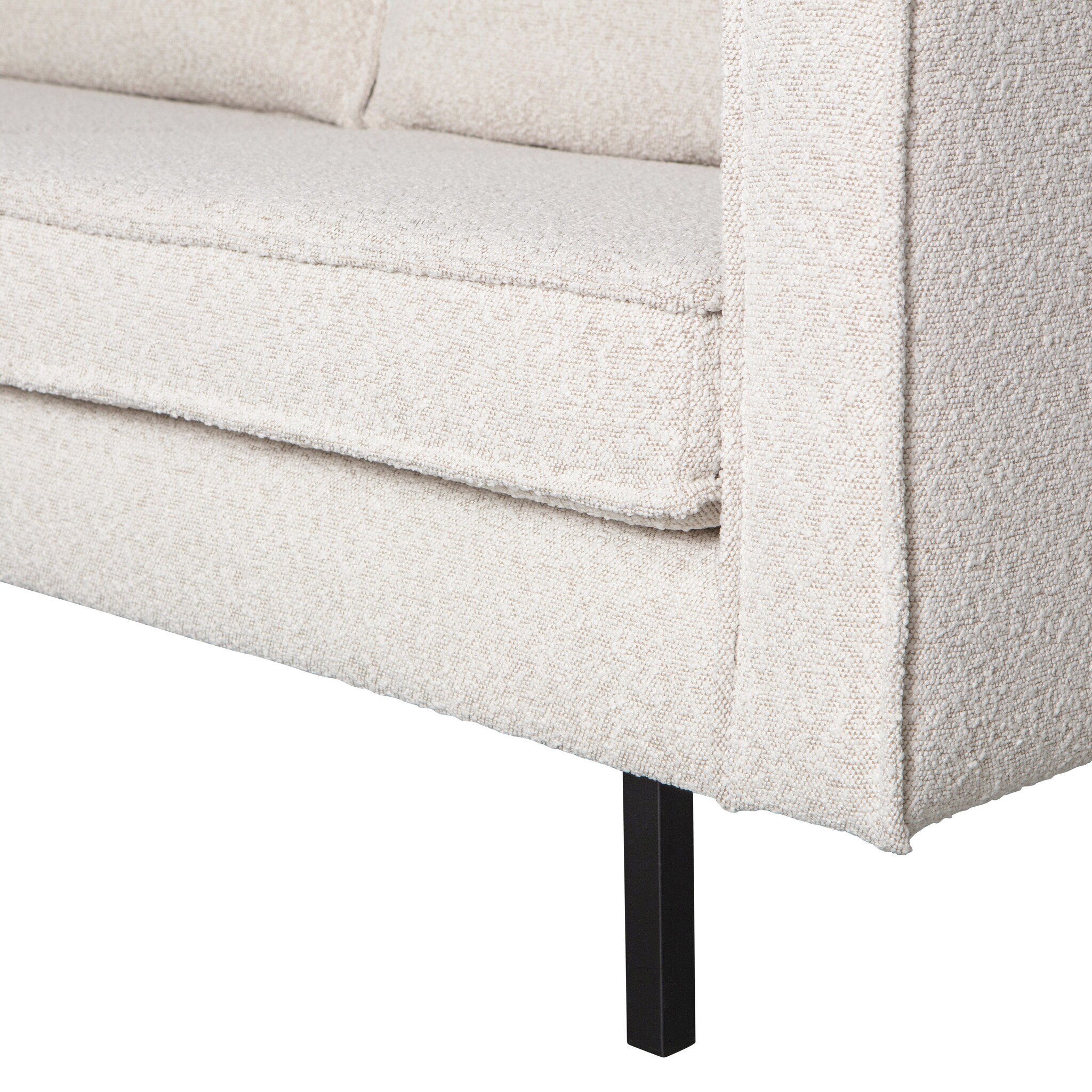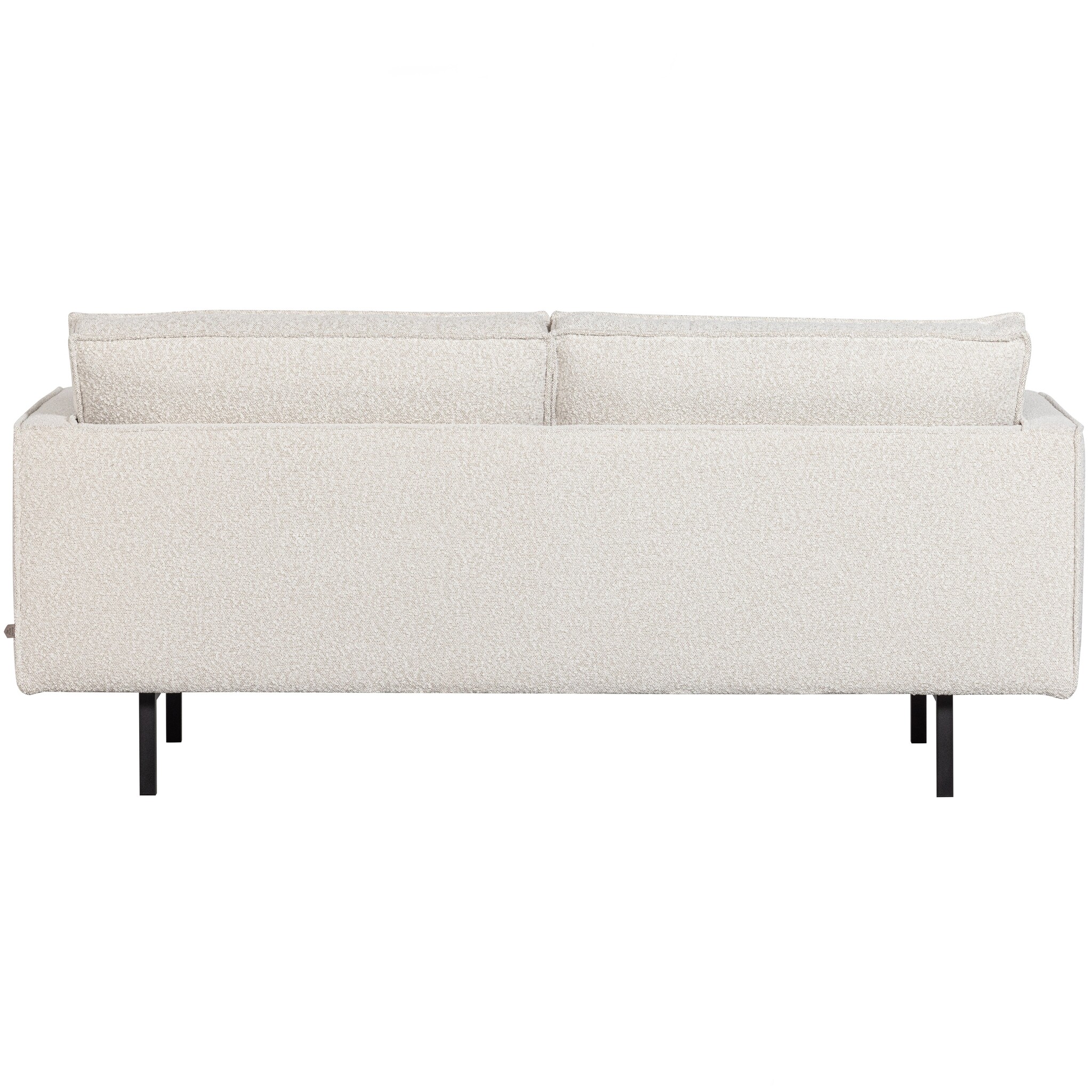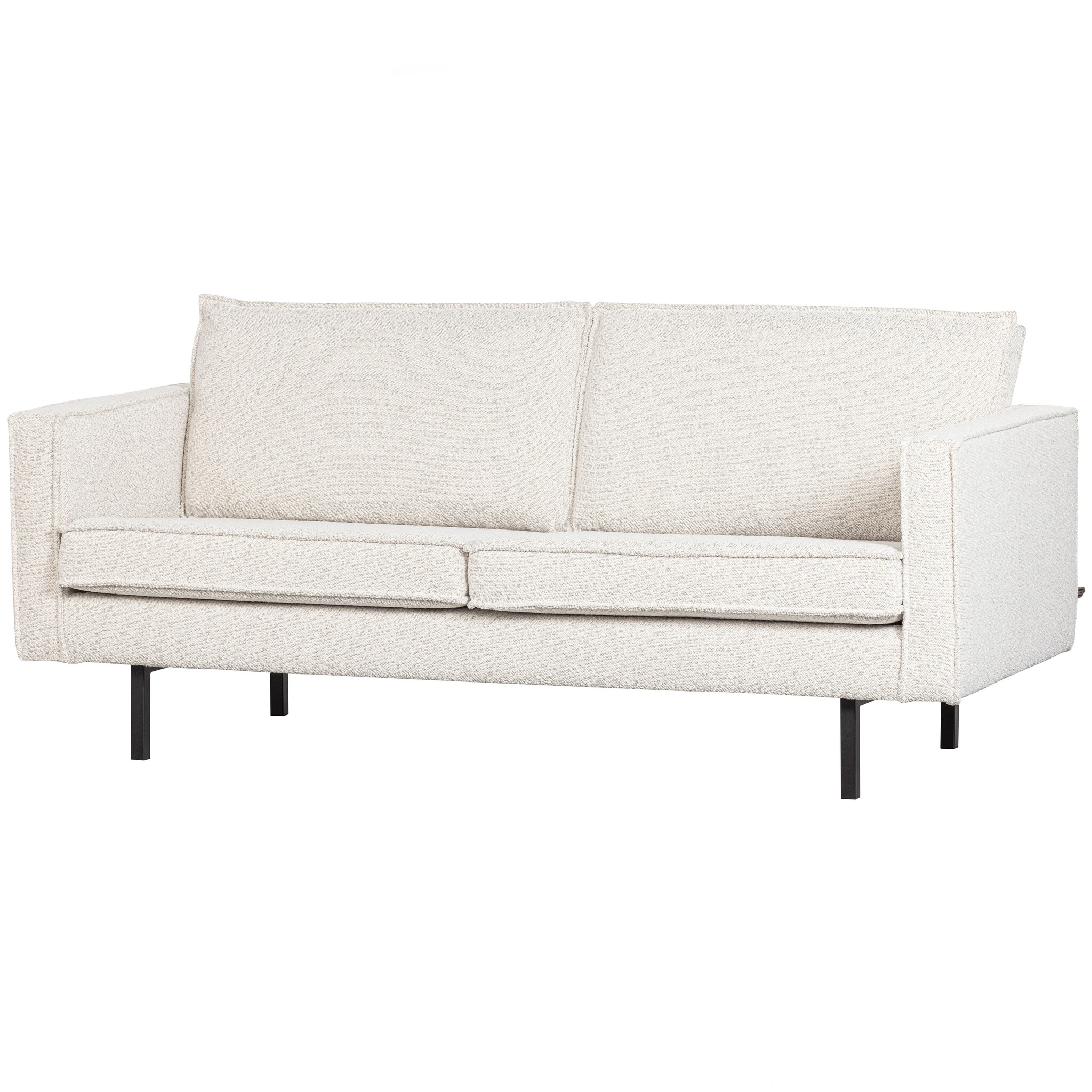 De Rodeo bank is opgebouwd uit een combinatie van massief hout, spaanplaat, polyurethaan schuim met een dichtheid van 25 kg/m3 en een zigzag vering. De zitting bevat een polyurethaan schuim met een dichtheid van 30 kg/m3 (T3037). De rugleuning bestaat uit een combinatie van 70% gesneden schuim en 30% siliconen. Deze Rodeo is bekleed met zachte bouclé. Het materiaal van de Colmar bouclé stof speelt in op de laatste trend: zachte materialen. De stof is zacht en heeft een elegante textuur die meteen warmte in huis brengt. Onze Colmar bouclé stof heeft een Martindale van 100.000, dat betekent dat de stof geschikt is voor intensief gebruik. De dichte weeftechniek zorgt voor de sterkte van de stof, dit maakt dat de bouclé niet snel zal slijten of scheuren. Ook heeft elke kleur een hoge kleurvastheid, maar het is aangeraden om direct zonlicht te vermijden om kleurnuances te voorkomen.