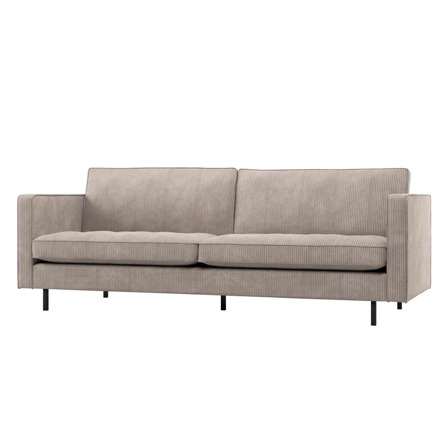 - Klassiek en royaal design - Onderdeel van de bekende Rodeo Classic serie - Bekleed met een luxe ribstof (100% polyester) - H 83 cm x B 230 cm x D 88 cm De Rodeo serie van het Nederlandse interieurlabel WOOOD is modern, stoer en eigentijds. De Rodeo's zijn royaal en bieden een heerlijk stevig zitcomfort. Door het hoge potenframe ogen de meubelen slank en luchtig. Rodeo staat bekend om de tijdloze kleur- en materiaal combinatie, geinspireerd op de jaren '50 gegoten in een eigentijds jasje. De klassieke twist van de Classic serie wordt gekenmerkt door de naar buiten gestikte naden en de doorgestikte zitkussens. Dare to go Rodeo! Materiaal De Rodeo Classic bank is opgebouwd uit een combinatie van massief hout, multiplex, spaanplaat, polyurethaan schuim met een dichtheid van 30 kg/m3 en een zigzag vering. De rugleuning bestaat uit een combinatie van 70% gesneden schuim en 30% siliconen. De Remy Rib is een moderne stof die een luxe uitstraling biedt. Dankzij de bijzondere jacquard weeftechniek heeft de stof een rijke textuur en een fluweelachtig uiterlijk. Onze Remy Ribstof is gemaakt van 100% polyesterdraad, wat zorgt voor een zachte touch. Met een Martindale score van 80.000 hoef je je geen zorgen te maken over krassen of pillen. Bovendien heeft de ribstof een verstevigde backing en oogt volumineus vanwege de brede banen. Afmetingen - Hoogte: 83 cm - Breedte: 230 cm - Diepte: 88 cm - Zithoogte: 47 cm - Zitbreedte: 206 cm - Zitdiepte: 58 cm - Armleuning breedte:12 cm - Armleuning hoogte (vanaf vloer): 70 cm - Poothoogte: 16 cm - Gewicht: 59 kg - Maximaal draaggewicht: 200 kg Onderhoud Zorg dat je bij ribstof altijd vlekken verwijdert met de vleug mee. Deppen met een lichtvochtige, schone doek laat de meeste vlekken eenvoudig verwijderen. Is de vlek hardnekkiger? Laat een vochtige doek de vlek absorberen. Het eventueel naborstelen met een zachte borstel zal ervoor zorgen dat de ribstof heerlijk zacht blijft aanvoelen. Levering De Rodeo Classic 2,5-zits bank wordt in een pakket geleverd. De poten zijn eenvoudig te bevestigen aan de hand van de bijgeleverde montagehandleiding. Plaats voor het beschermen van harde vloeren viltglijders aan de onderzijde van de poten.| Materiaal | 100% pes |