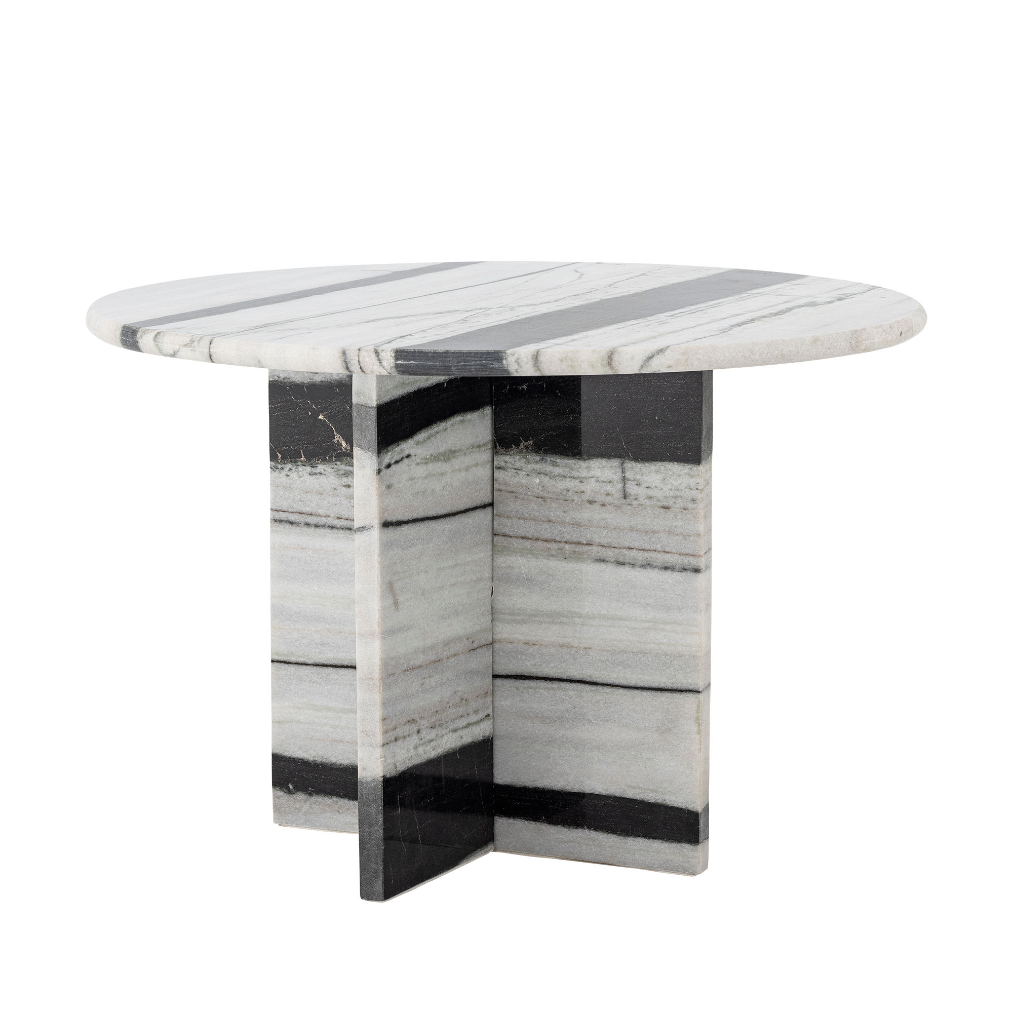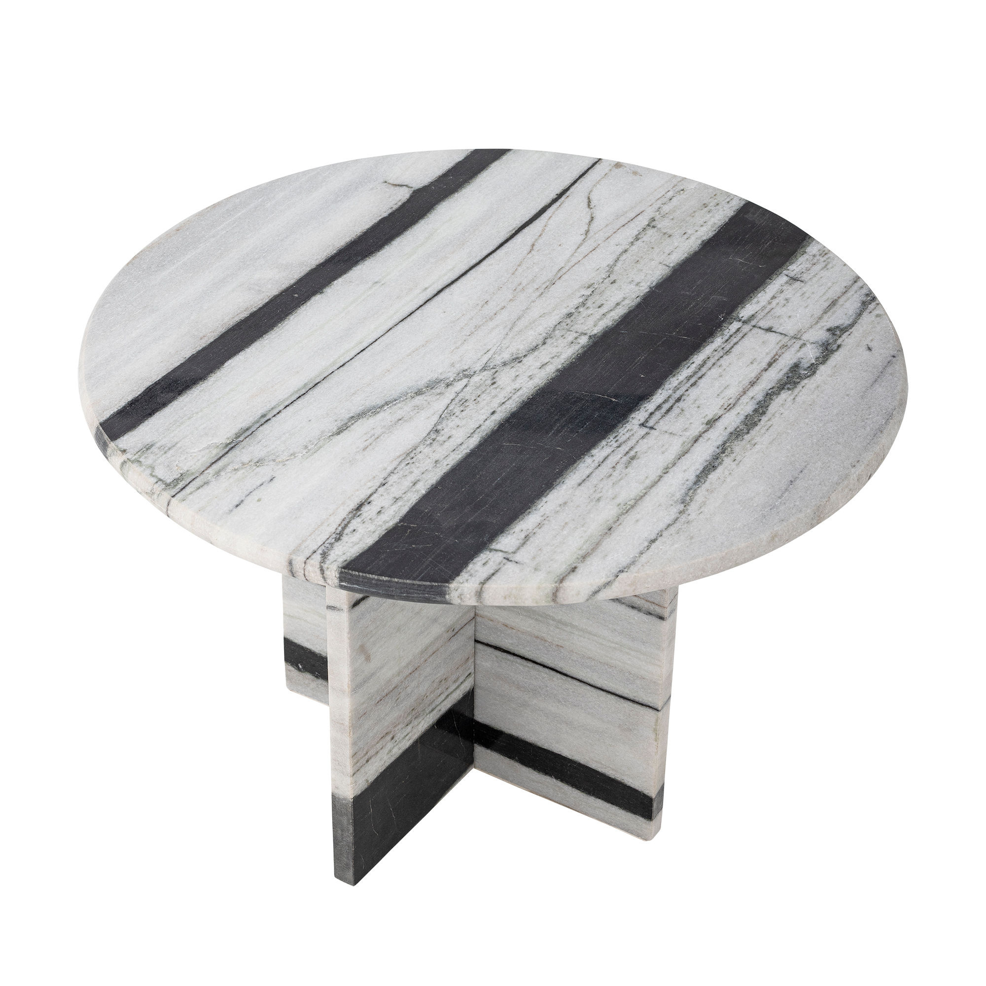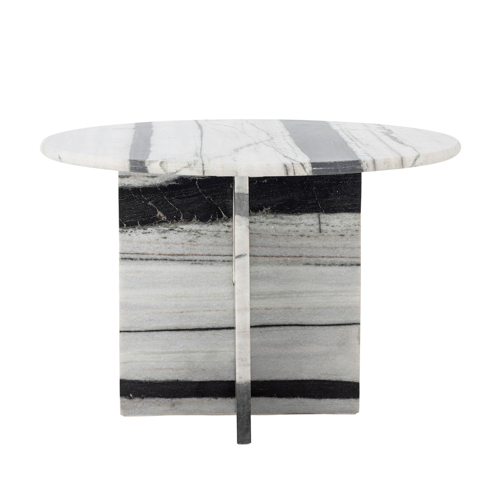 De Rosito salontafel van Bloomingville is een luxe marmeren tafel met een gepolijste afwerking. De ronde witte top wordt geaccentueerd door donkere strepen die het natuurlijke karakter van het marmer benadrukken. Een sculpturale voet geeft de tafel een moderne, elegante uitstraling.