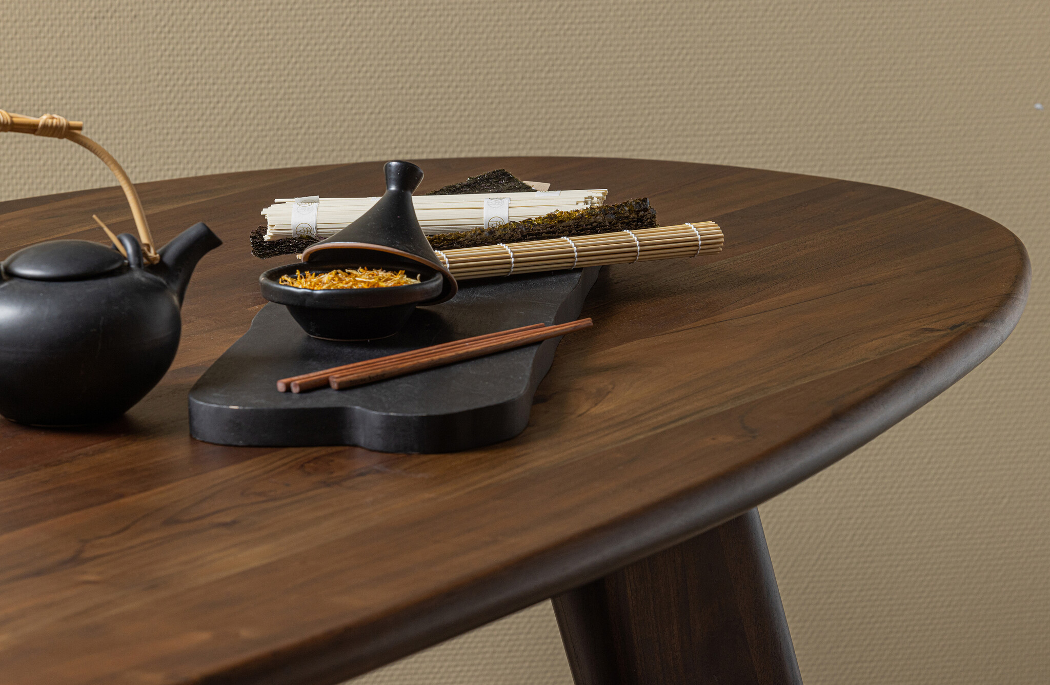 Het organisch gevormde blad en de luxueuze walnootkleur zorgen voor het chique doch speelse design. Een avondje gezellig dineren met al je dierbaren, er is voor iedereen plek. Ook kun je de Roundly gebruiken als bureau. De Roundly geeft een natuurlijke uitstraling aan je interieur door zijn mangohouten walnoot kleur, het maakt het gezelliger en sfeervoller. Het gladde mangohout is wel bestand tegen een stootje, dus; waar komt jouw Roundly te staan?