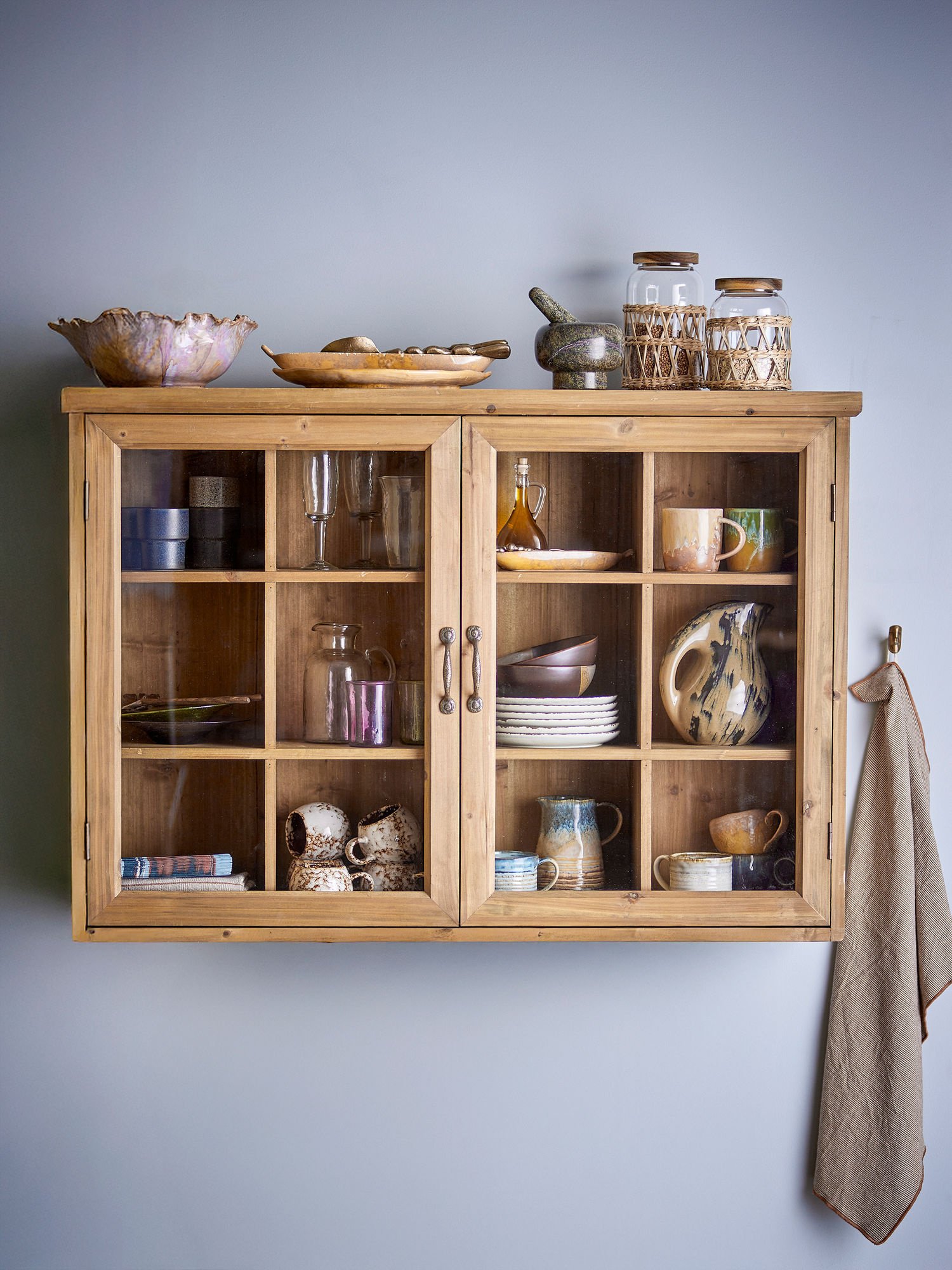 De Ruthie kast van Bloomingville is klein van stuk maar groots in karakter. Gemaakt van sparrenhout met glazen deuren, elegante handgrepen en een warme houttint die rust uitstraalt. De kleine vakken zijn ideaal voor het tentoonstellen van je mooiste vondsten, boeken of servies.