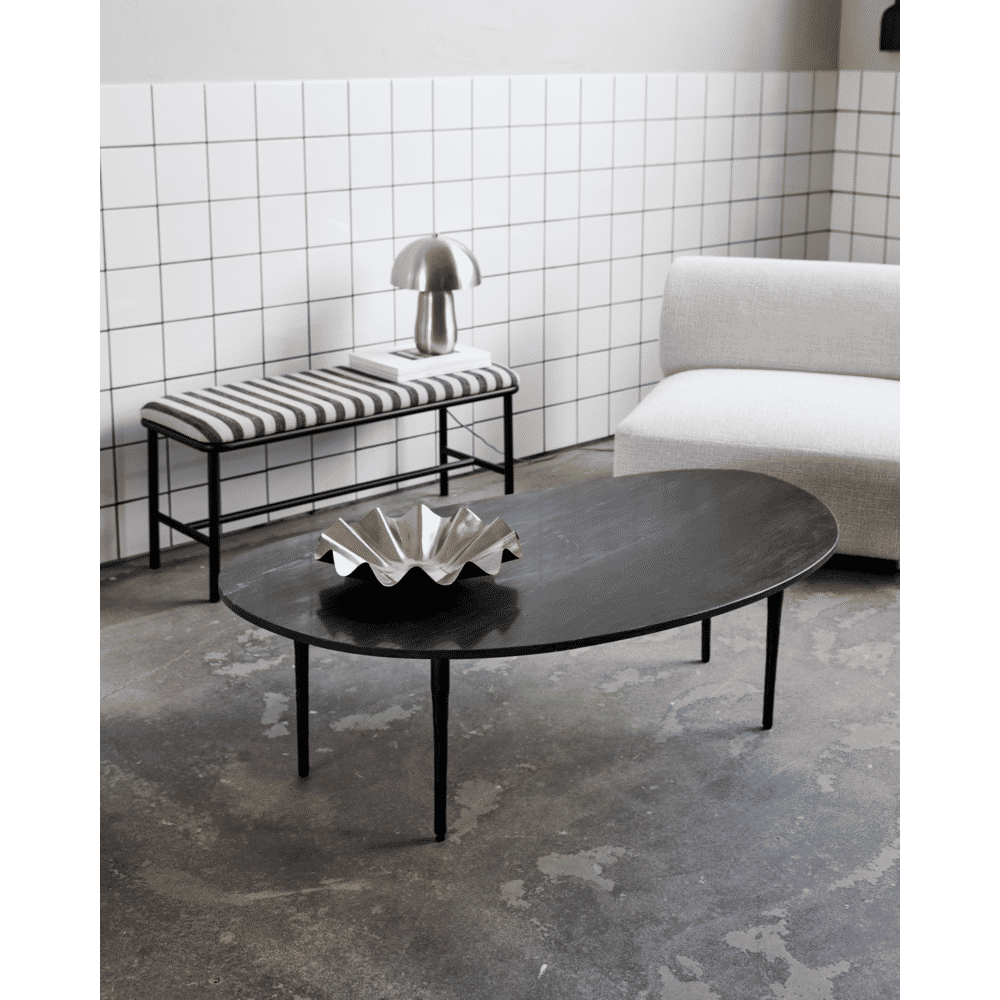 De Eda salontafel combineert een massief, zwart marmeren blad met een strak ijzeren onderstel. Een tijdloos en sculpturaal design dat in je woonkamer een stijlvol middelpunt wordt.