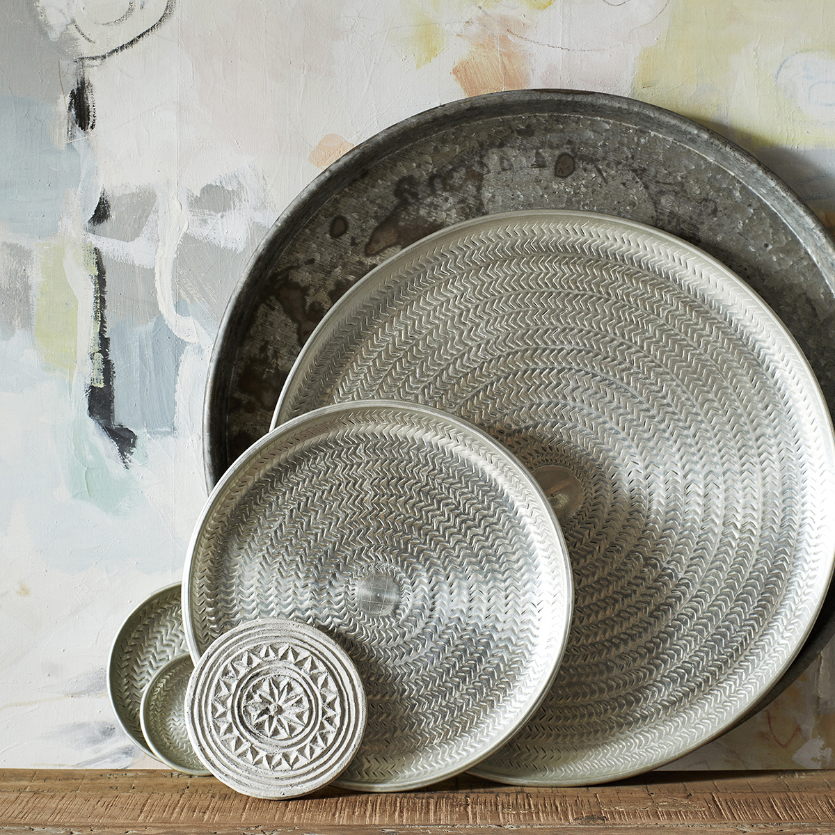 Madam Stoltz Set 2 gehamerde zilverkleurige schalen