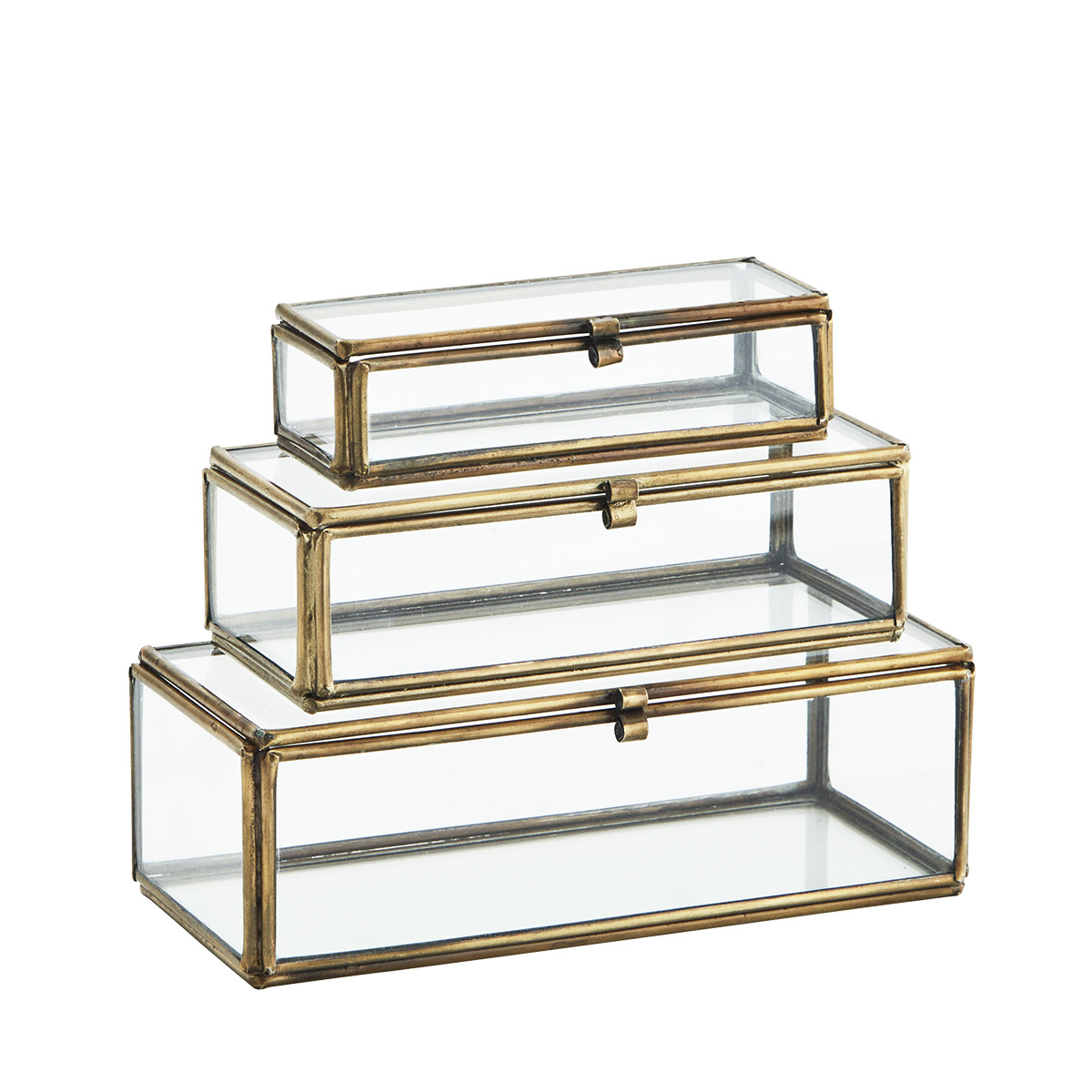 Deze set glazen boxjes van Madam Stoltz is een praktische en stijlvolle opbergoplossing voor kleine items. Gemaakt van helder glas, bieden deze boxjes een overzichtelijke manier om je spullen georganiseerd te houden. Met verschillende formaten in de set kun je diverse items zoals sieraden, knutselbenodigdheden, of kantoorartikelen netjes opbergen. De transparante ontwerp zorgt ervoor dat je direct kunt zien wat erin zit, waardoor je gemakkelijk kunt vinden wat je zoekt. Of je ze nu op een plank, bureau, of kaptafel plaatst, deze glazen boxjes voegen een netjes en opgeruimd gevoel toe aan elke ruimte.