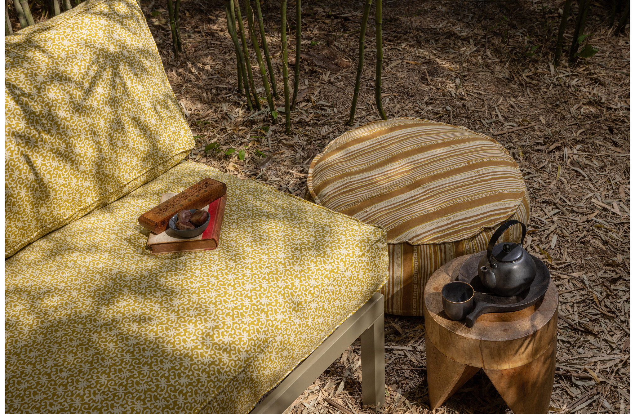 Let op: deze tuinkussens zijn niet behandeld met een all weather coating, berg hierom de kussens na gebruik direct op in een droge binnenruimte.