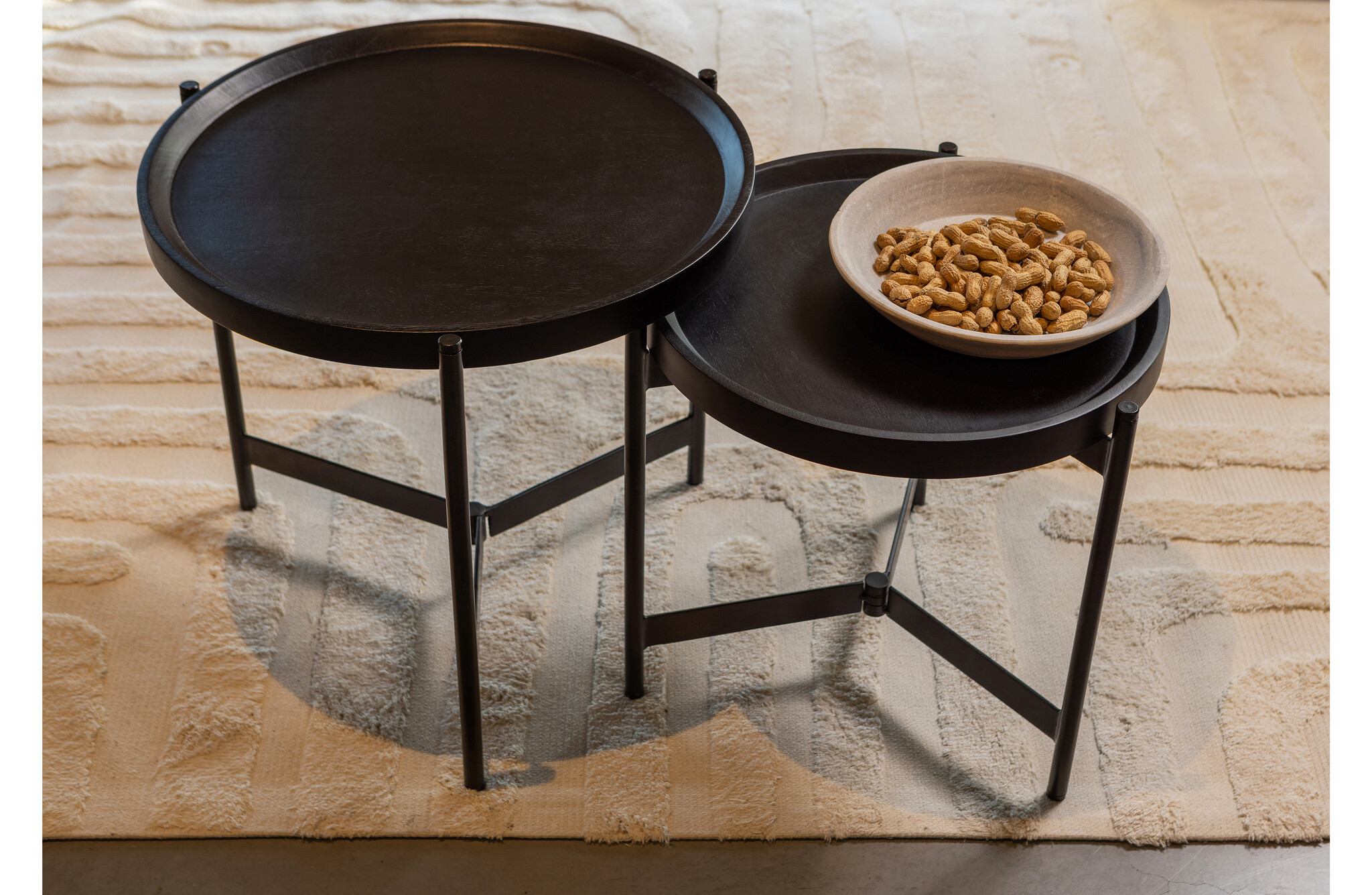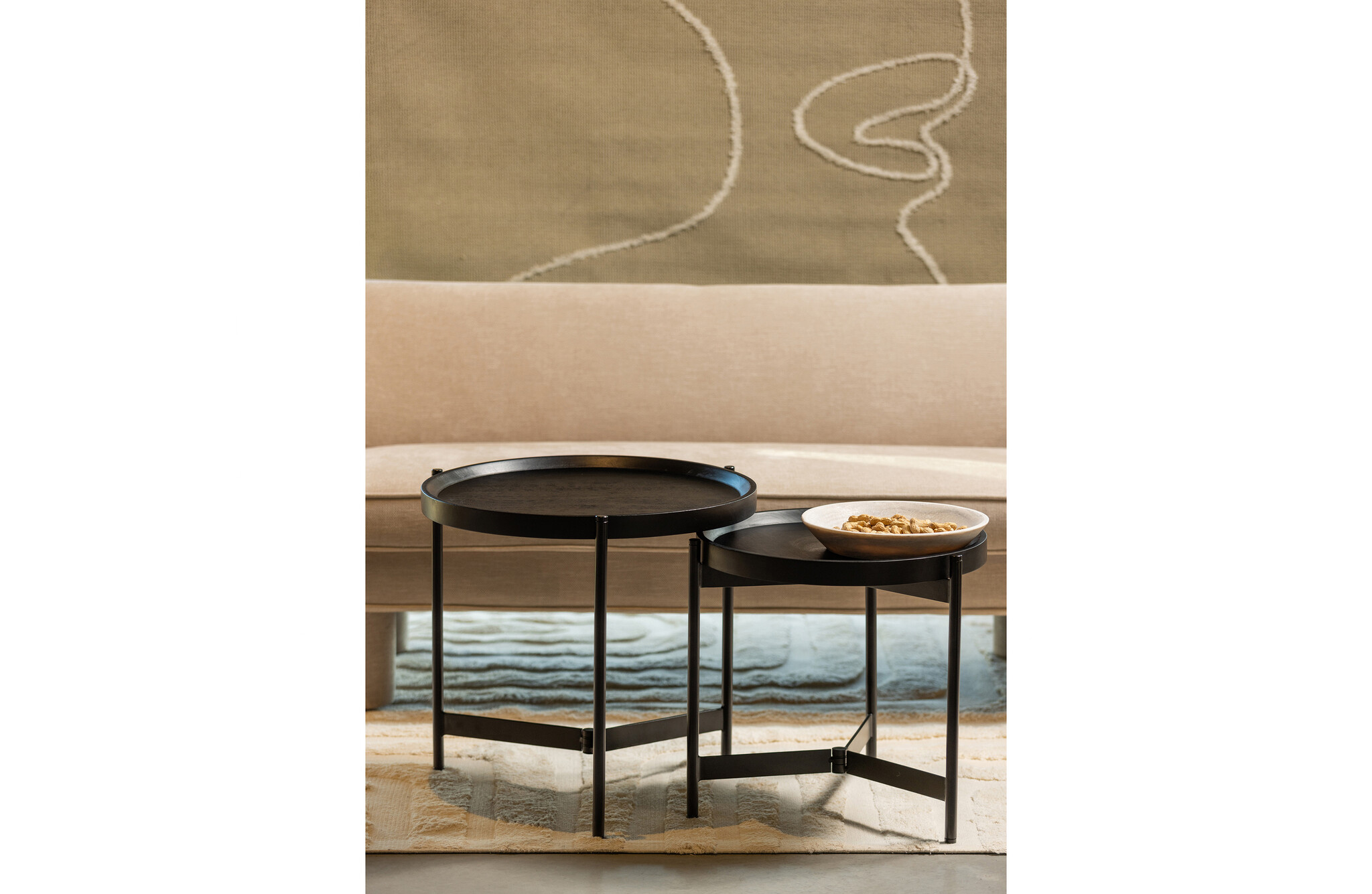 De Lizzy bijzettafel set van twee stuks komt uit de Exclusive collectie van het Nederlandse interieurmerk WOOOD. De tafel set heeft een strak design met het eenvoudige potenframe en stijlvolle tafelblad. De tafels hebben een matzwarte finish en vormt hierdoor een tijdloos paar. Het opstaande randje van de tafelbladen zorgt ervoor dat gespild drinken veilig op het tafeltje blijf liggen, wel net zo praktisch voor een gezin met jonge kinderen! Het tafelblad biedt voldoende ruimte voor het plaatsen van je favoriete boeken, een kopje koffie of decoratieve items.